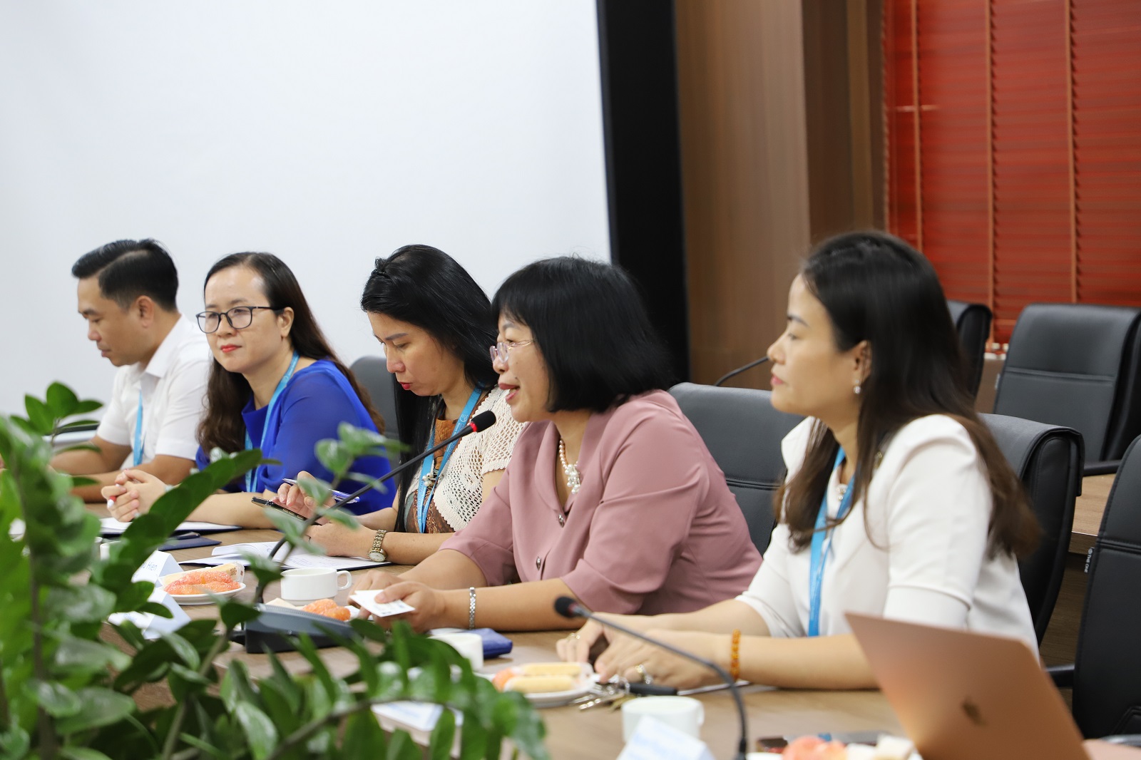 Mở đầu buổi làm việc, TS. Dương Kim Anh gửi lời cảm ơn đến Trung tâm phát triển Giáo dục EDC và bày tỏ sự vui mừng được đón tiếp bà Sattiya Langkhapin cùng cộng sự đến làm việc trực tiếp tại Học viện. Phó Giám đốc giới thiệu chung về lịch sử hình thành và phát triển của Học viện; các chuyên ngành đào tạo cũng như về định hướng phát triển của Học viện, giúp đại diện EDC có cái nhìn chung, bao quát về đối tác.
