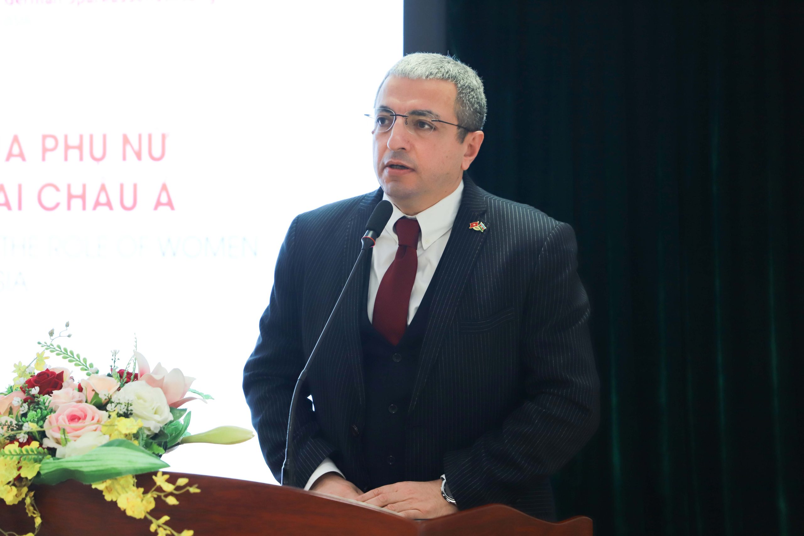 lực của Học viện Phụ nữ Việt Nam trong việc thúc đẩy các nghiên cứu liên quan đến bình đẳng giới và phát triển bền vững. Ngài nhấn mạnh rằng những vấn đề về giới hiện nay có tính chất toàn cầu và cần sự hợp tác mạnh mẽ giữa các quốc gia trong khu vực châu Á – Âu. Đại sứ cho rằng Việt Nam và Azerbaijan có nhiều điểm tương đồng trong việc nâng cao quyền năng phụ nữ, đặc biệt trong giáo dục, đổi mới sáng tạo và phát triển kinh tế xanh. Theo Ngài, HERASIA 2025 là diễn đàn khoa học quan trọng giúp kết nối các nhà nghiên cứu, chia sẻ tri thức và định hình các chính sách phát triển nhạy cảm giới, góp phần hướng tới một cộng đồng khu vực bền vững và bao trùm hơn.