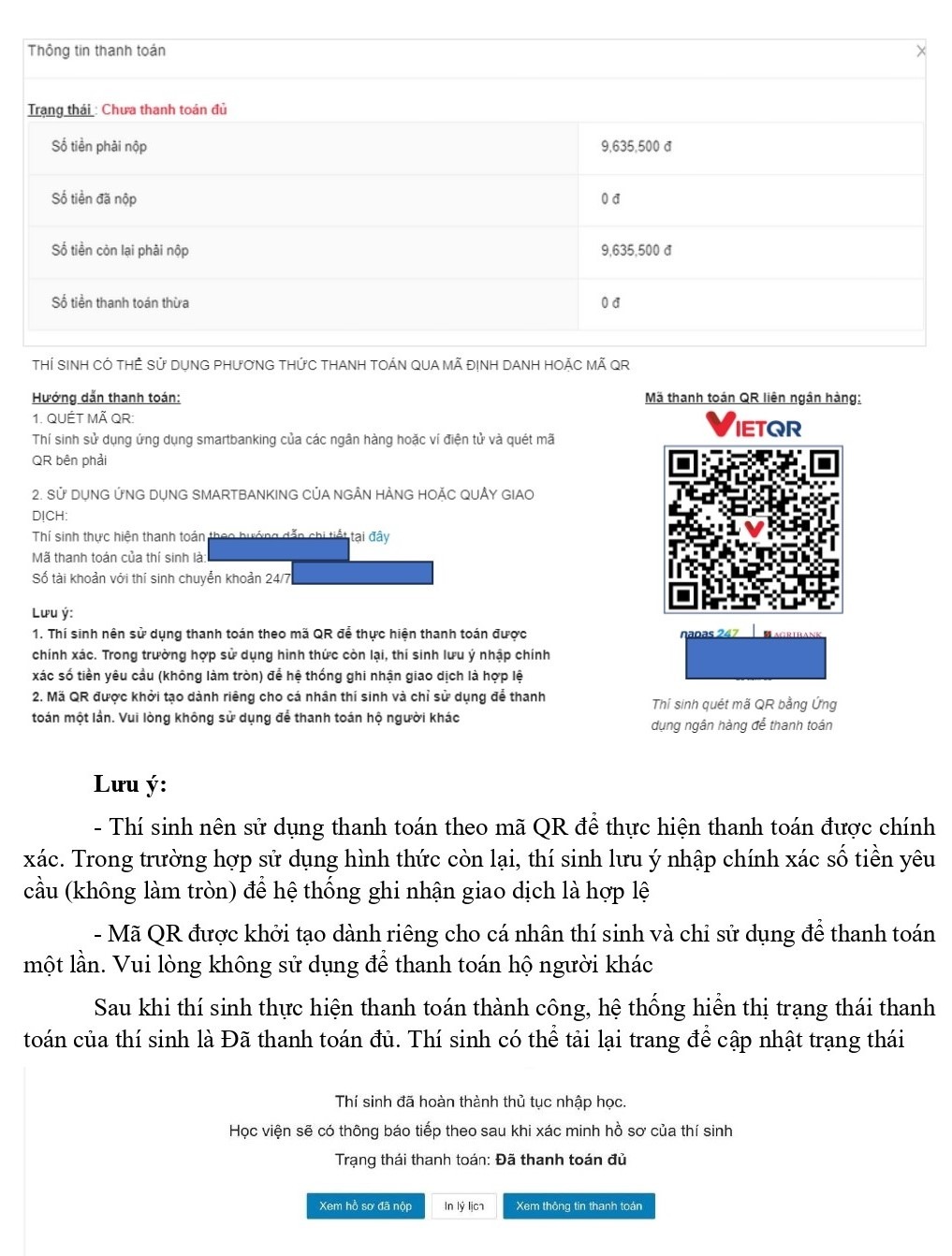 HƯỚNG DẪN CHI TIẾT CÁC BƯỚC NHẬP HỌC TRÊN HỆ THỐNG CỦA HỌC VIỆN