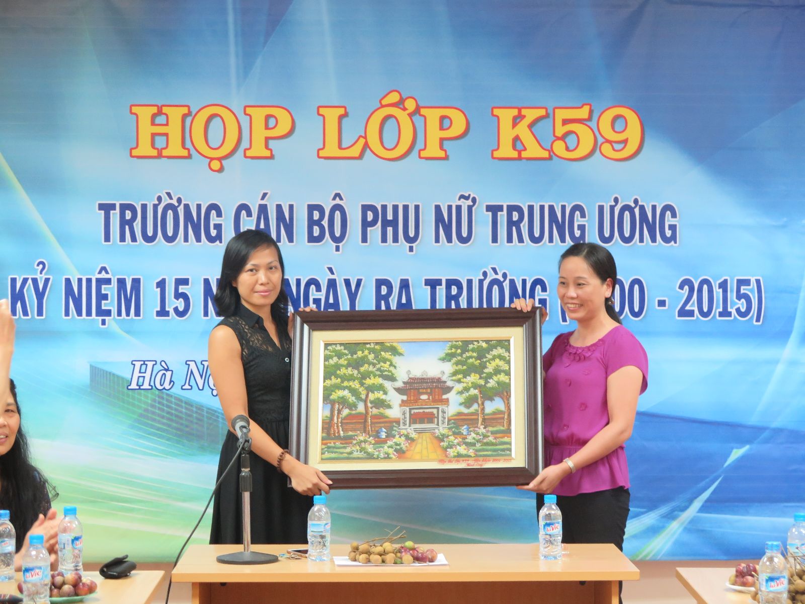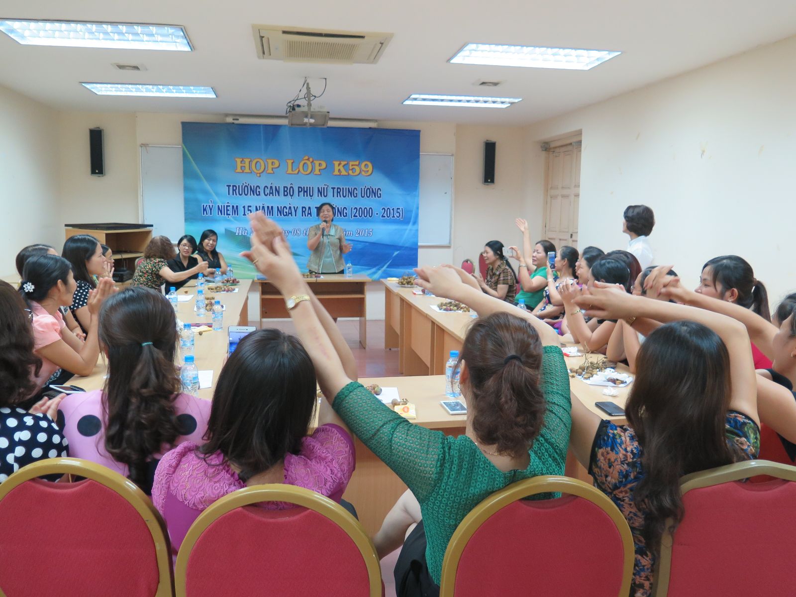 Chia sẻ với các cô giáo, đại diện lớp bày tỏ niềm xúc động, vui mừng khi được hội ngộ với những người bạn sau nhiều năm xa cách, mất liên lạc, có những người chỉ mới liên lạc được từ đêm hôm trước đã bỏ lại công việc để đến với nhau ngay ngày hôm sau không quản ngại đường xa. Tình cảm chân thành, ấm áp của lớp còn được dành gửi đến các cô giáo đã từng truyền thụ kiến thức và kinh nghiệm làm người, làm công tác Hội. Để giờ đây, các thành viên K59 tụ họp tại đây ai cũng có những thành tích để chia sẻ với cô giáo và bè bạn. Đại diện lớp đã cảm ơn trường, các cô và các bạn đã có mặt để tham dự ngày hội ý nghĩa này và mong muốn tiếp tục được gặp lại những gương mặt thân quen trong những lần hội ngộ tiếp theo. Tập thể lớp K59 cũng gửi đến Học viện Phụ nữ Việt Nam lời cảm ơn sâu sắc bởi quá trình dìu dắt, tạo điều kiện trong suốt hai năm học và ngay cả ở thời điểm hiện tại.