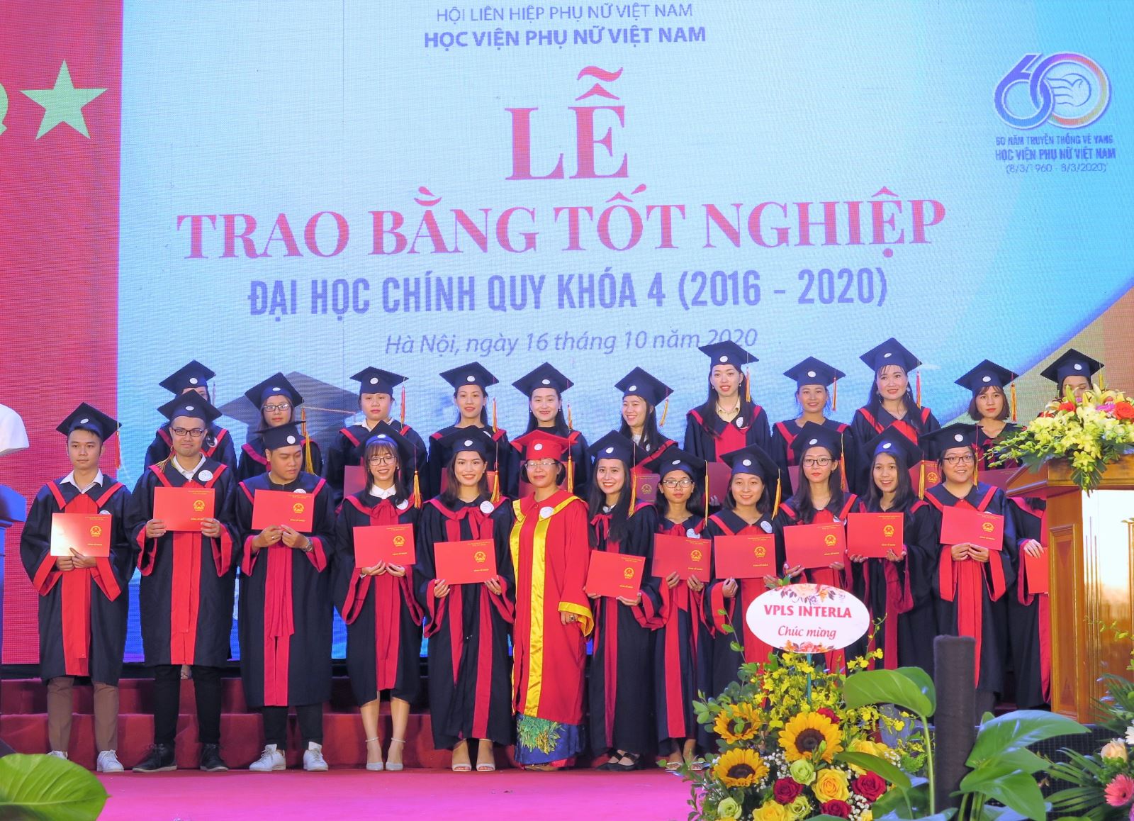 Trong không khí phấn khởi, vui mừng của lễ kỷ niệm 60 năm ngày truyền thống và khai giảng năm học mới 2020 – 2021, học viện Phụ nữ Việt Nam đã trao học bổng cho các tân sinh viên đạt điểm cao trong kỳ thi tốt nghiệp THPT năm 2020 và các sinh viên đạt thành tích xuất sắc trong học tập và rèn luyện. Ban Giám đốc Học viện cũng trao bằng cử nhân cho 88 tân cử nhân của Học viện Phụ nữ Việt Nam.