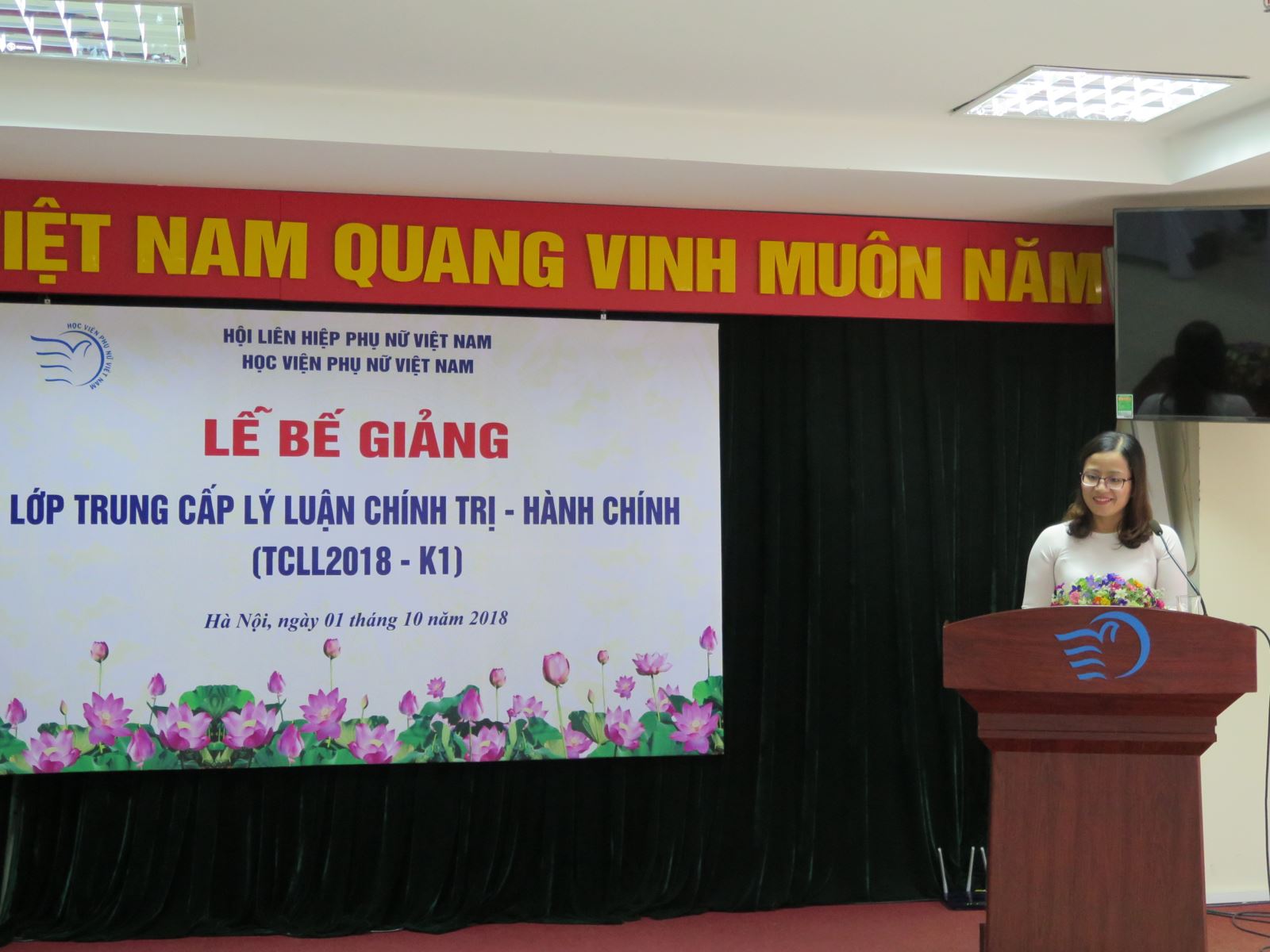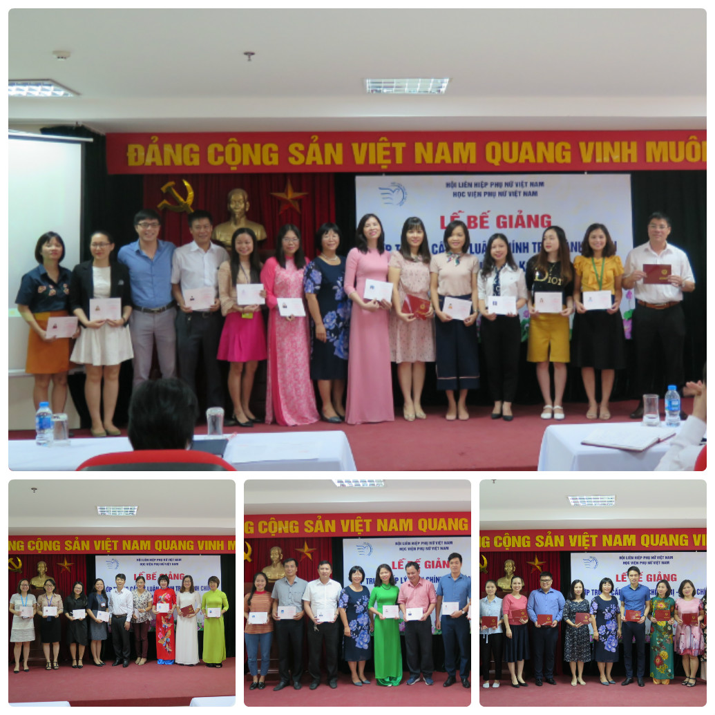 Tham dự lễ bế giảng có TS. Trần Quang Tiến – Giám đốc Học viện, TS. Dương Kim Anh – Phó Giám đốc Học viện, lãnh đạo các khoa, phòng, trung tâm của học viện và tập thể 67 học viên là cán bộ/ cán bộ nguồn của Học viện Phụ nữ Việt Nam, các Ban TW Hội LHPN, các sinh viên đang học tại Học viện, các cán bộ đang công tác tại các Bộ, ngành tại Hà Nội.