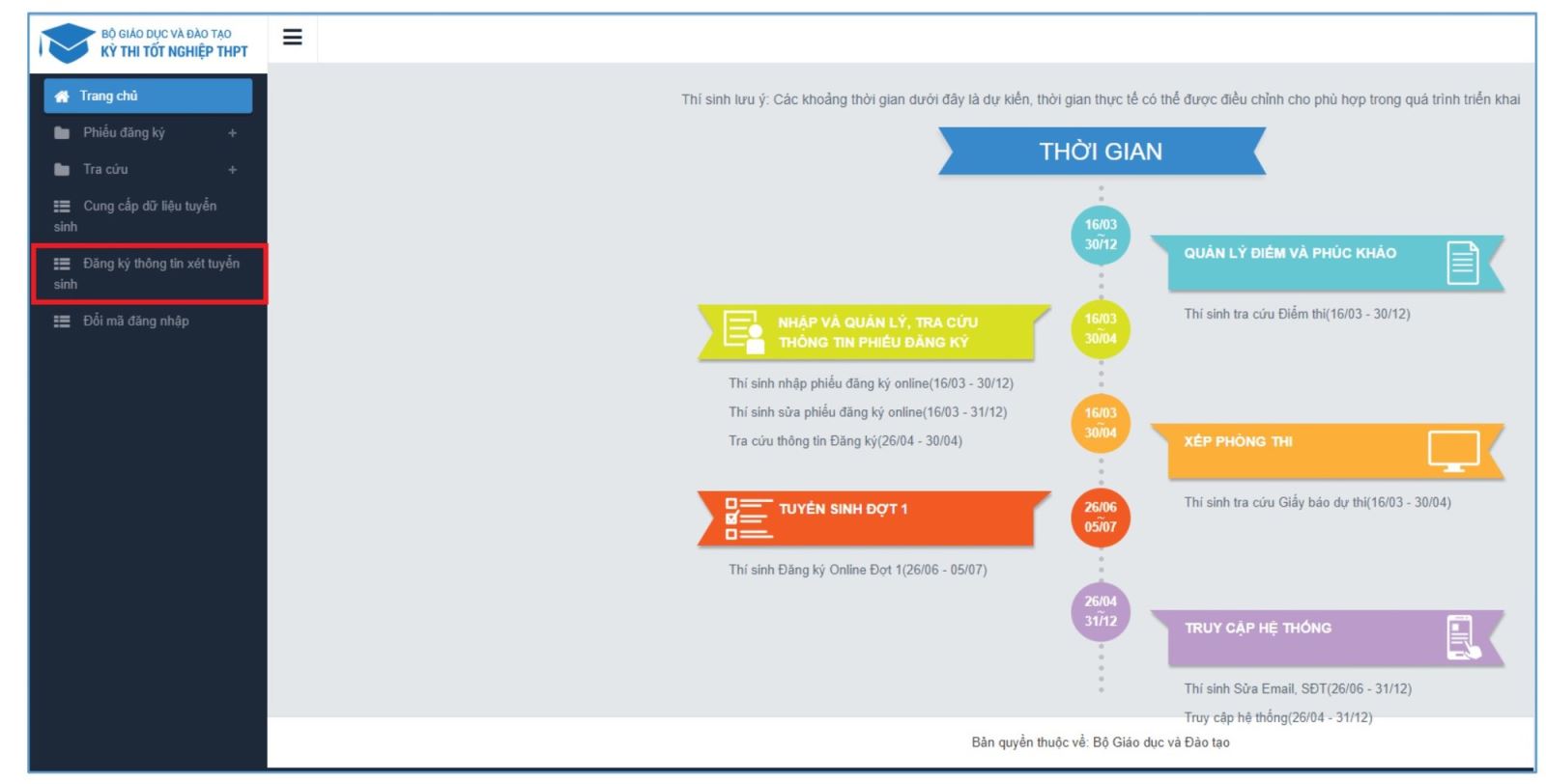 Bước 1: Thí sinh đăng nhập vào Hệ thống xét tuyển qua đường link: https://thisinh.thithptquocgia.edu.vn/. Sau đó đăng nhập bằng tài khoản của thí sinh.