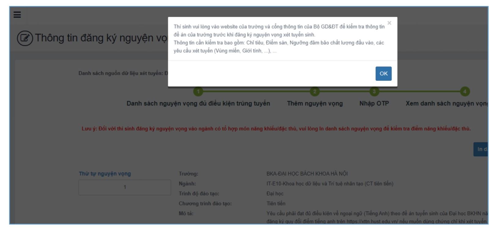 Bước 3: Nhấn vào Xem danh sách nguyện vọng đã đăng ký