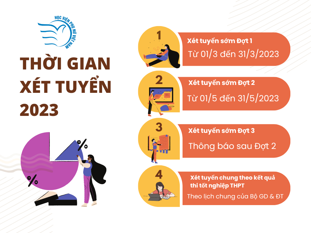 Học viện Phụ nữ Việt Nam chia thời gian xét tuyển làm 4 đợt:
