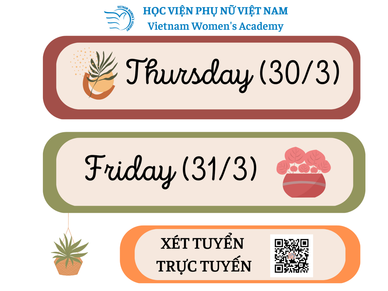 ⭐️ Cơ sở Học viện Phụ nữ Việt Nam tại Tp. HCM: 620 Đỗ Xuân Hợp, phường Phước Bình, TP Thủ Đức, TP Hồ Chí Minh