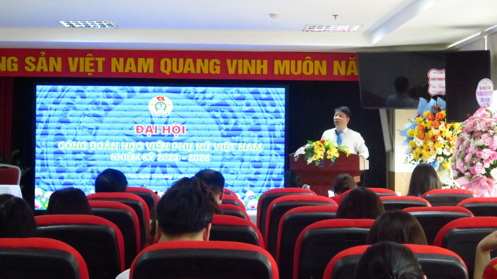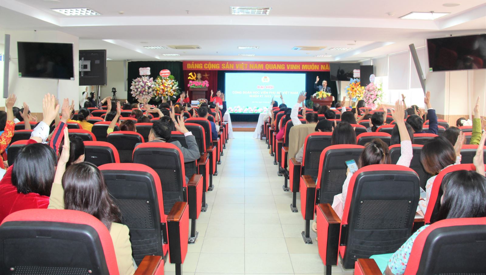 Đại hội Công đoàn Học viện Phụ nữ Việt Nam nhiệm kỳ 2023-2028 nhằm tổng kết hoạt động, đánh giá phong trào công đoàn nhiệm kỳ 2017-2022, đề ra phương hướng nhiệm vụ và bầu ra Ban Chấp hành công đoàn nhiệm kỳ 2023-2028.