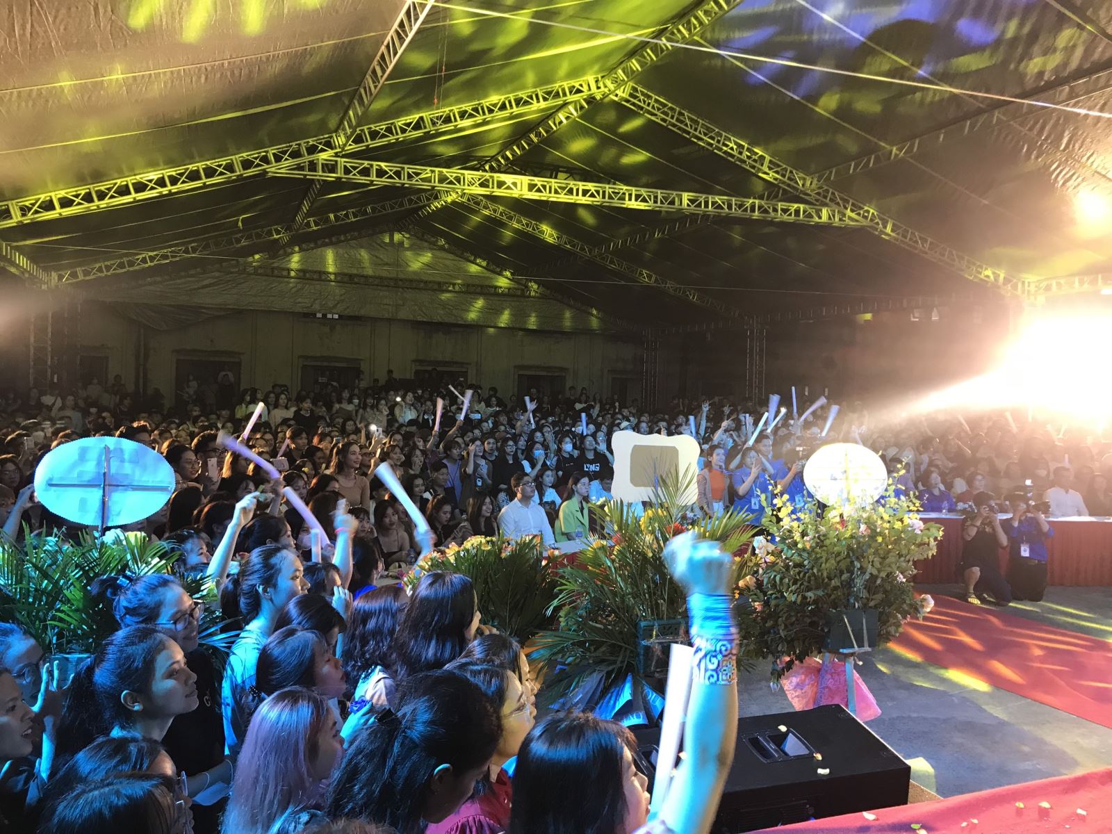 Ban tổ chức cũng rất tinh tế khi chuẩn bị sẵn không gian, gậy sắc màu để cùng các bạn sinh viên cháy hết mình với âm nhạc.