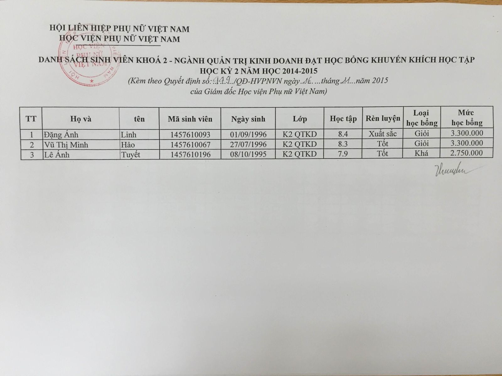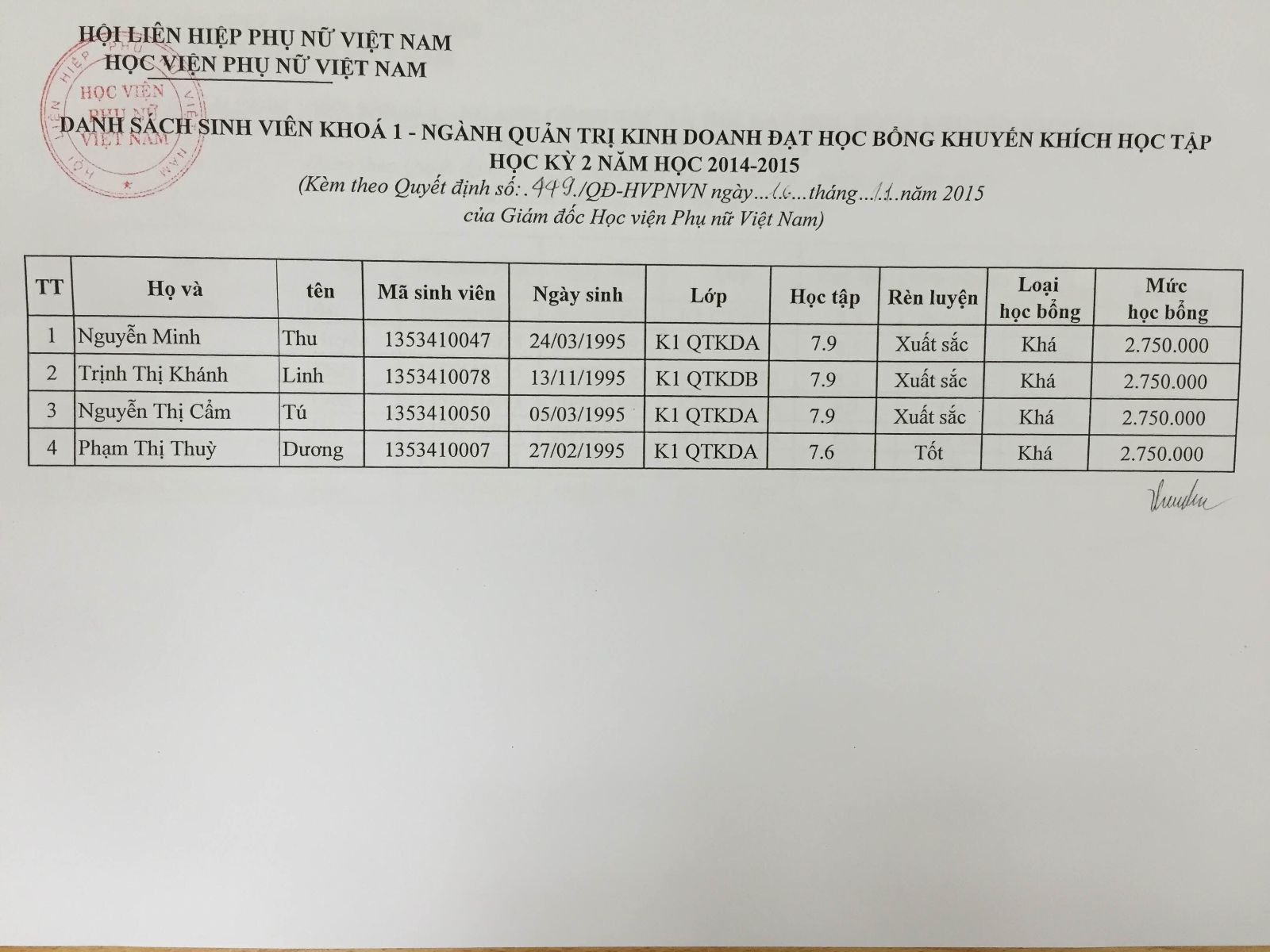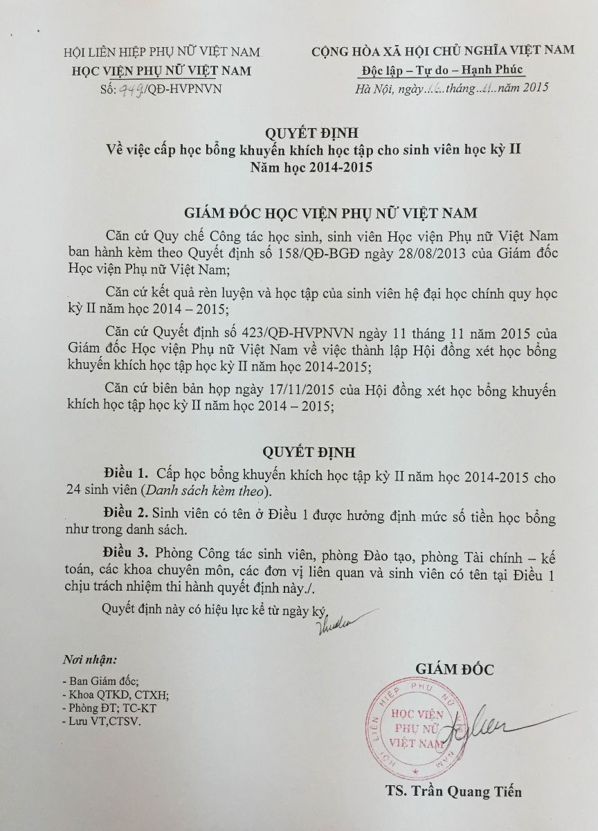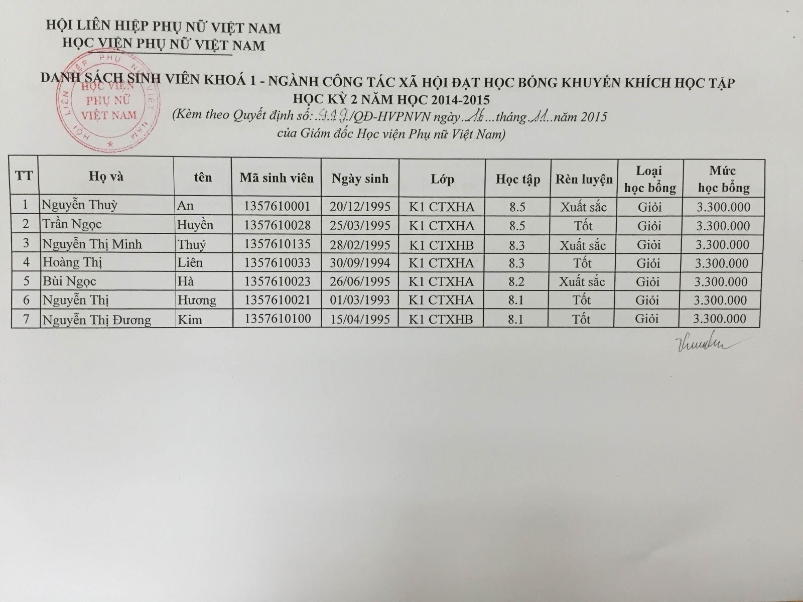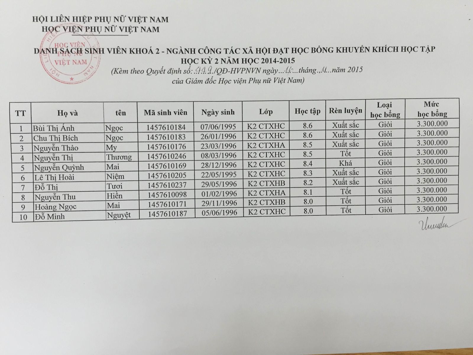 Tin tứcDanh sách sinh viên đạt học bổng khuyến khích học tập học kỳ 2 năm học 2014-2015 Posted on Tháng Mười Một 18, 2015 by admin(full) 18 Th11 admin(full) Học viện Phụ nữ Việt Nam tham gia Lễ kỷ niệm ngày hội Công tác xã hội thế giới lần thứ 18 và nhận cờ đăng cai tổ chức ngày hội CTXH lần thứ 19 vào năm 2016THÔNG BÁO MỘT SỐ NỘI DUNG VỀ TUYỂN DỤNG HỢP ĐỒNG NĂM 2015