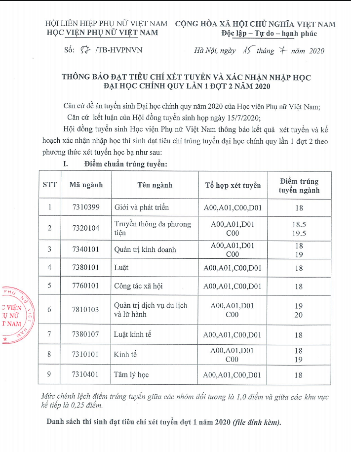 DANH SÁCH THÍ SINH ĐẠT YÊU CẦU XÉT TUYỂN HỌC BẠ LẦN 1 ĐỢT 2 NĂM 2020