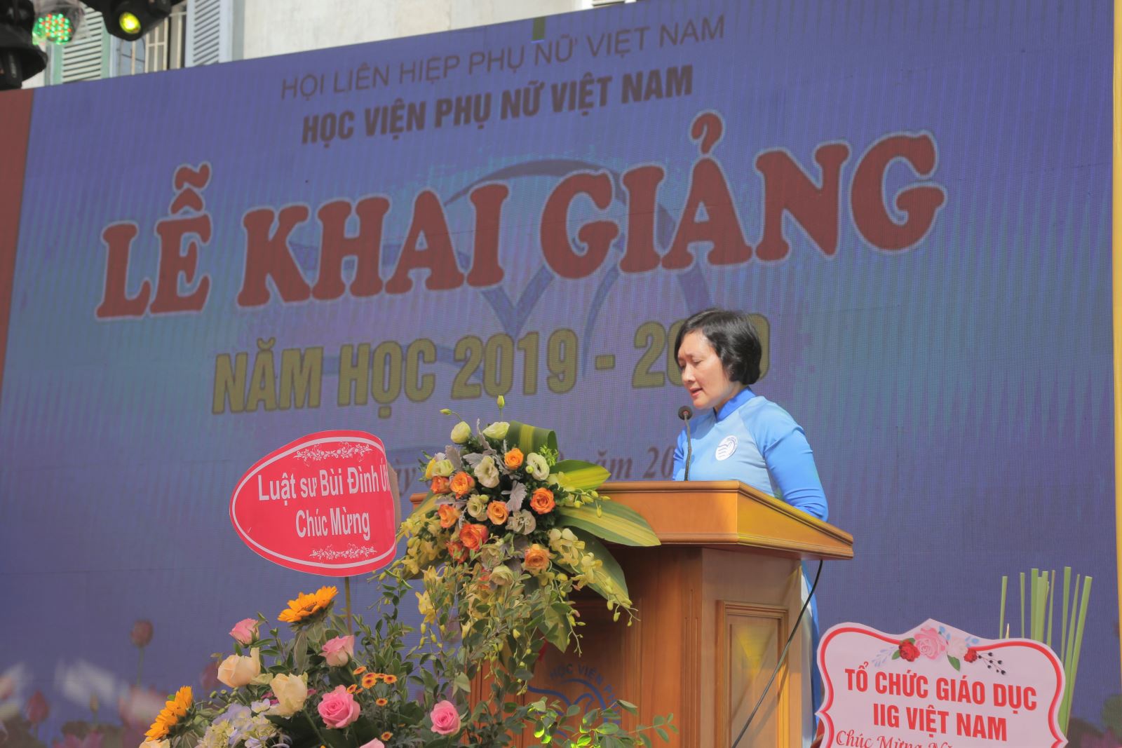 Thay mặt Ban Giám đốc Học viện Phụ nữ Việt Nam tôi xin trân trọng cảm ơn đồng chí Nguyễn Thị Tuyết, các đồng chí lãnh đạo các Ban, đơn vị Hội Liên hiệp Phụ nữ Việt Nam, lãnh đạo các đơn vị trực thuộc Bộ Giáo dục và Đào tạo; đại biểu đại diện các Bộ, ngành, các cơ quan, tổ chức, doanh nghiệp, trung tâm công tác xã hội; các tổ chức quốc tế tại Việt Nam, các chuyên gia trong và ngoài nước đã dành sự quan tâm, yêu mến đến dự Lễ khai giảng hôm nay.