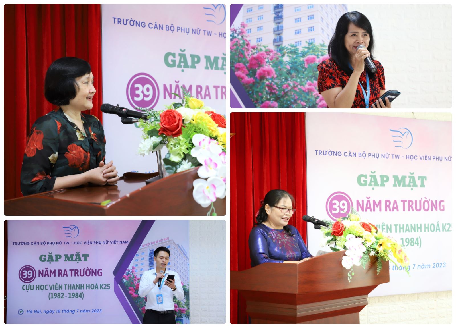 Tại buổi gặp mặt, thay mặt các cựu học viên, bác Lê Thị Tảo – Trưởng Đoàn cựu học viên K25 – Đoàn Thanh Hoá đã báo cáo khái quát sự trưởng thành của các học viên của khoá tại Thanh Hoá cũng như có những chia sẻ rất chân tình sau thời gian dài về thăm lại trường cũ. Bác bày tỏ mong muốn của cả đoàn về kế hoạch gặp gỡ kỉ niệm 40 năm ngày ra trường vào năm 2024 và mong muốn buổi gặp gỡ hôm nay sẽ là nền tảng để lớp khởi động tinh thần, kết nối liên lạc với các chị em cùng khoá trên mọi miền tổ quốc.