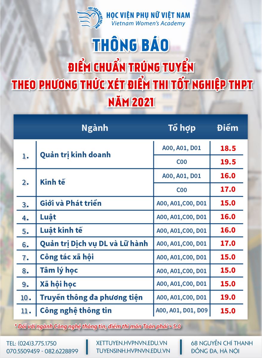 Mức điểm chuẩn trúng tuyển theo phương thức xét điểm thi năm 2021