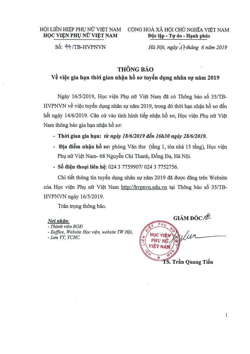 Tin tứcGia hạn thời gian nhận hồ sơ tuyển dụng năm 2019 Posted on Tháng Sáu 17, 2019 by admin(full) 17 Th6 Thông tin tuyển dụng chi tiết xem TẠI ĐÂY admin(full) Thông tin gia hạn thời gian viết bài tham dự hội thảo KHQGThông báo về việc tổ chức lễ bế giảng và trao bằng tốt nghiệp cho SV K3