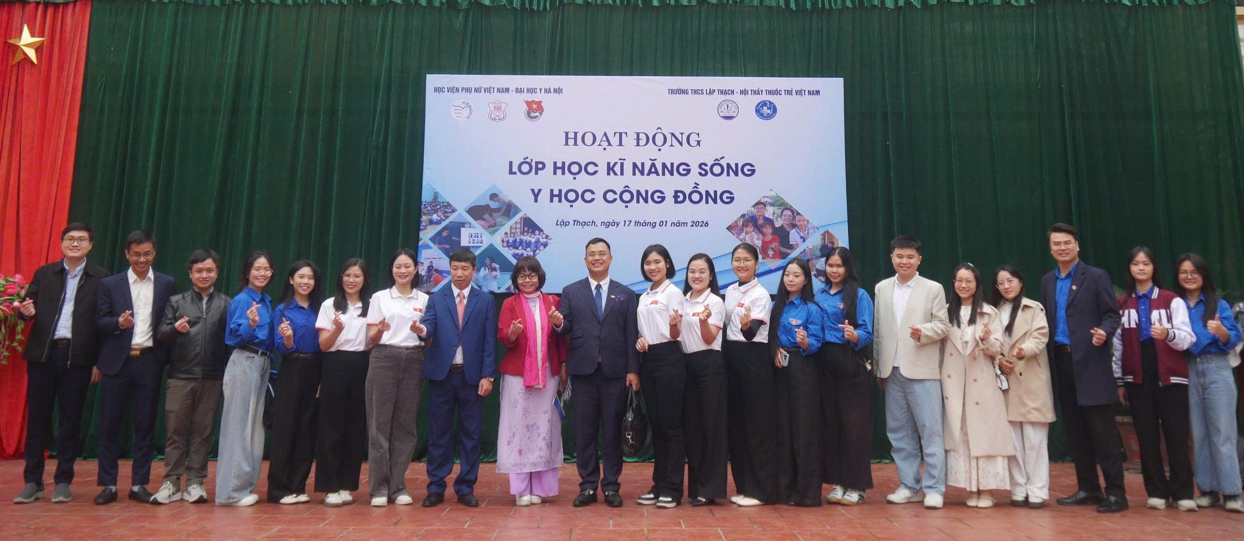Đoàn cán bộ, giảng viên, sinh viên của Học viện Phụ nữ Việt Nam tham gia chương trình “Lớp học kỹ năng sống – Y học cộng đồng” tại Trường THCS Lập Thạch, huyện Lập Thạch, tỉnh Phú Thọ
