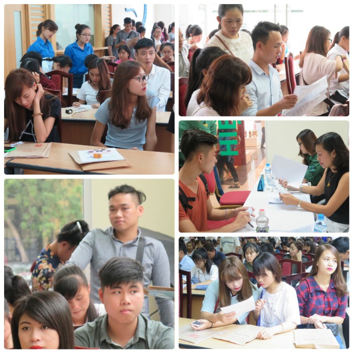 Ngay từ đầu giờ sáng, tân sinh viên ở khắp nơi trong cả nước đã có mặt tại trường để làm thủ tục nhập học. Mặc dù có chút lo lắng, bỡ ngỡ khi lần ��ầu bước vào giảng đường đại học nhưng tất cả các em đều tràn đầy háo hức và sự tự tin của tuổi trẻ.