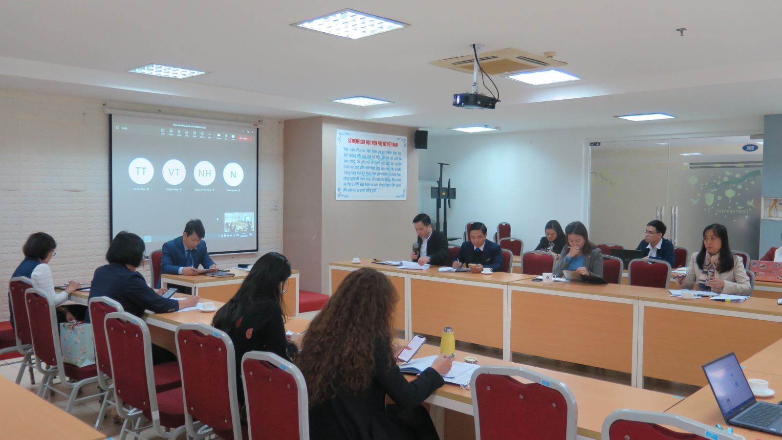 Chủ trì cuộc họp là PGS.TS. Trần Quang Tiến – Chủ tịch Hội đồng tuyển sinh, Giám đốc Học viện. Các thành viên thuộc hội đồng tuyển sinh là lãnh đạo đại diện các khoa chuyên ngành cũng có mặt tham dự cuộc họp.