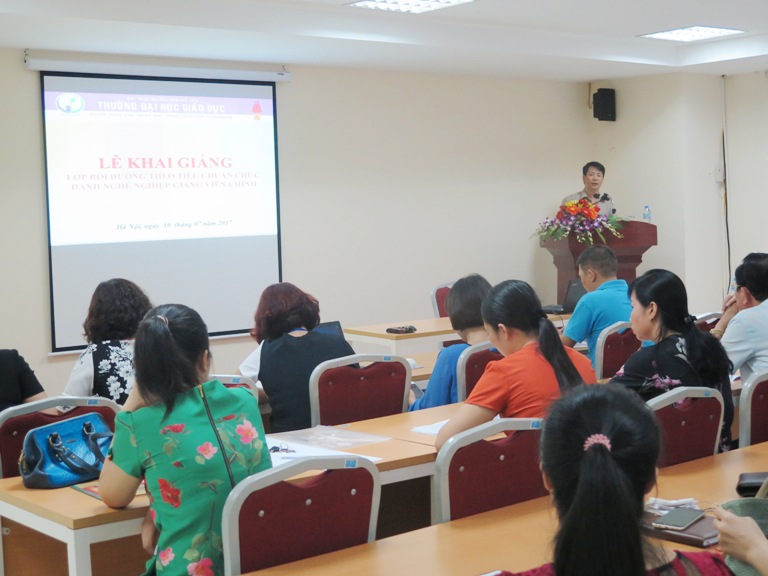 Phát biểu khai mạc khóa học, TS. Trần Quang Tiến đã nêu mục đích, ý nghĩa của Lớp bồi dưỡng tiêu chuẩn chức danh nghề nghiệp giảng viên chính và chúc các học viên hoàn thành khoá học với kết quả cao. Giám đốc tin tưởng rằng sau khi bồi dưỡng học viên sẽ được nâng cao được năng lực chuyên môn, nghiệp vụ, phát triển năng lực nghề nghiệp, thực hiện tốt các nhiệm vụ của viên chức giảng dạy, đáp ứng tiêu chuẩn chức danh nghề nghiệp Giảng viên chính.