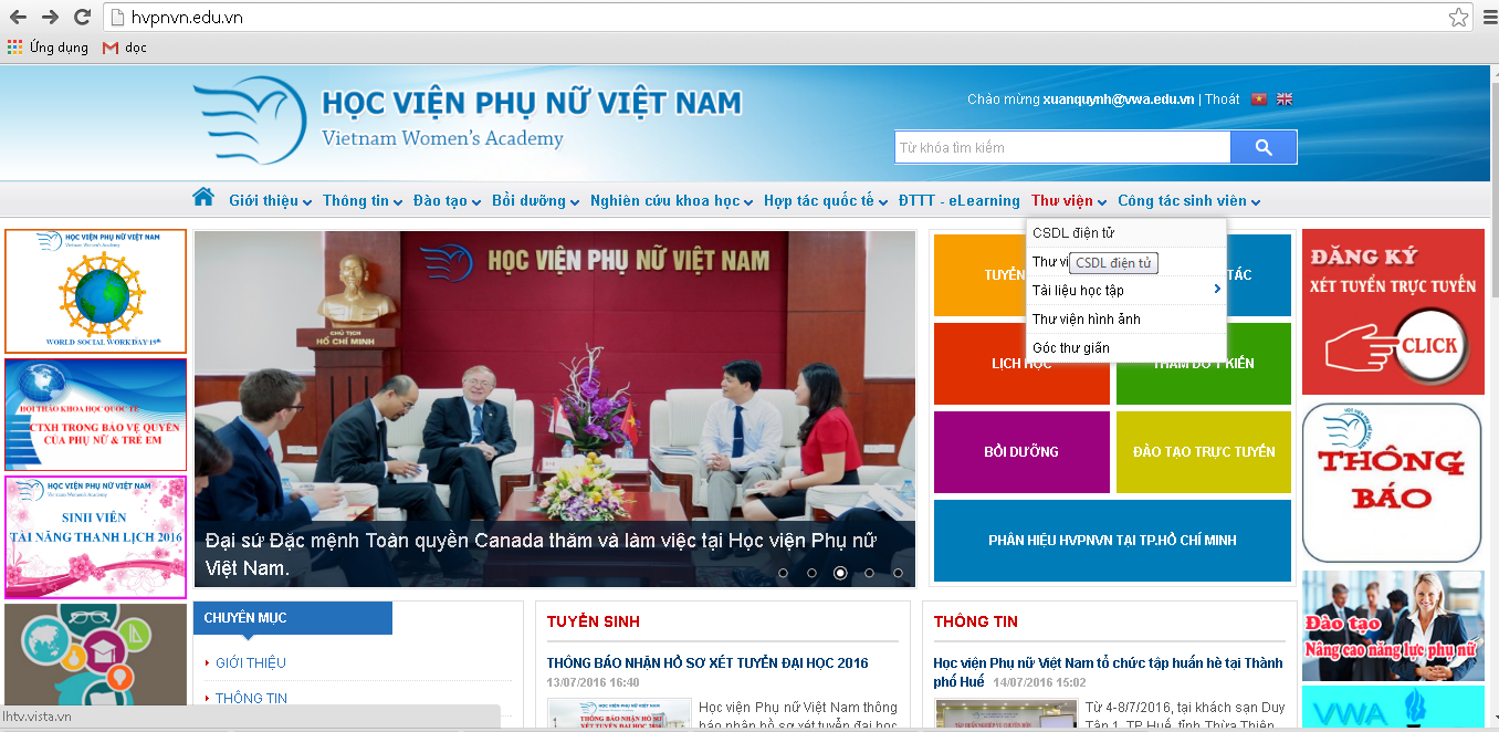 Học viện Phụ nữ Việt Nam đã ký hợp đồng mua bản quyền sử dụng cơ sở dữ liệu trong 2 năm và quyền truy nhập cổng thông tin dành cho cán bộ, giảng viên, nghiên cứu viên, sinh viên toàn Học viện. Với khối lượng đồ sộ và phong phú, người truy cập có thể tham khảo nhiều loại tài liệu khác nhau phục vụ cho công việc của bản thân cụ thể như: