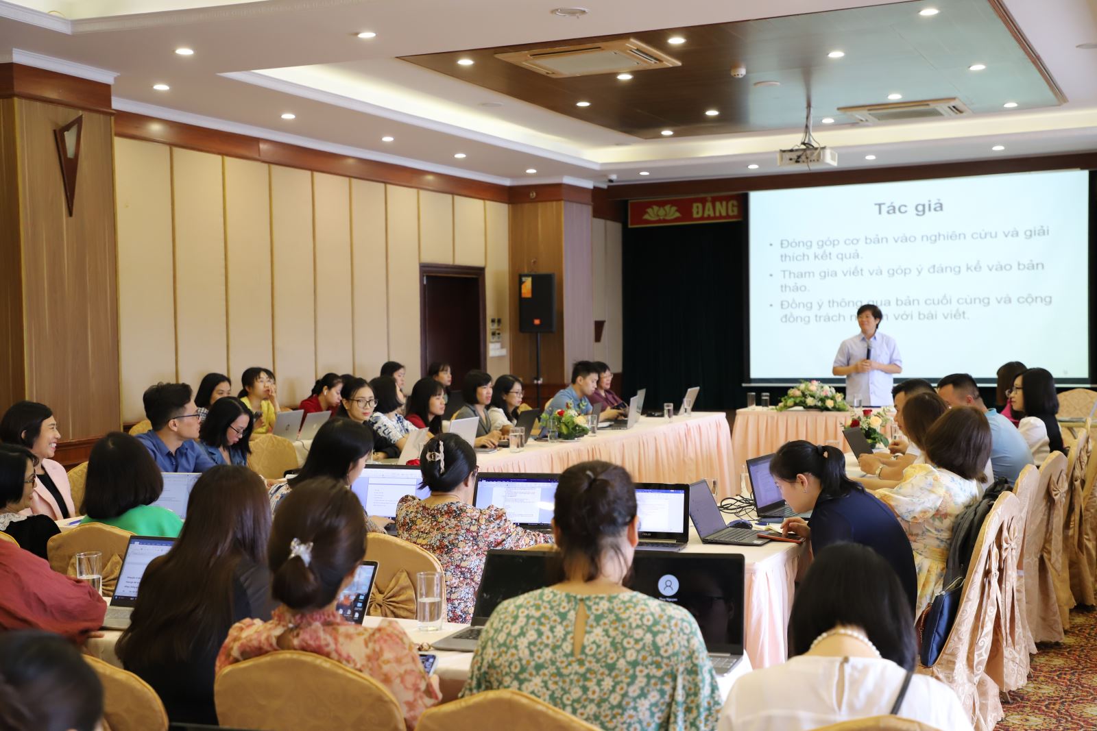 Đối với lớp bồi dưỡng dành cho giảng viên và nghiên cứu viên, chuyên gia đã chia sẻ các chuyên đề: Ứng dụng công nghệ trong thiết kế bài giảng với mục tiêu giúp đội ngũ giảng viên cơ hữu của Học viện cải thiện năng lực thiết kế slides bài giảng và tổ chức các hoạt động giảng dạy để thu hút người học tham gia. Chuyên đề 2: Nâng cao chất lượng công bố bài viết trên tạp chí khoa học trang bị các nội dung giúp giảng viên, nghiên cứu viên chuẩn về cấu trúc, văn phong, phân tích chính sách, pháp luật, phân tích thống kê cơ bản, lựa chọn tạp chí phù hợp để gửi bài viết nhằm giúp giảng viên tự tin, nâng cao số lượng, chất lượng bài viết trên các tạp chí có tính điểm cao ở trong và ngoài nước.