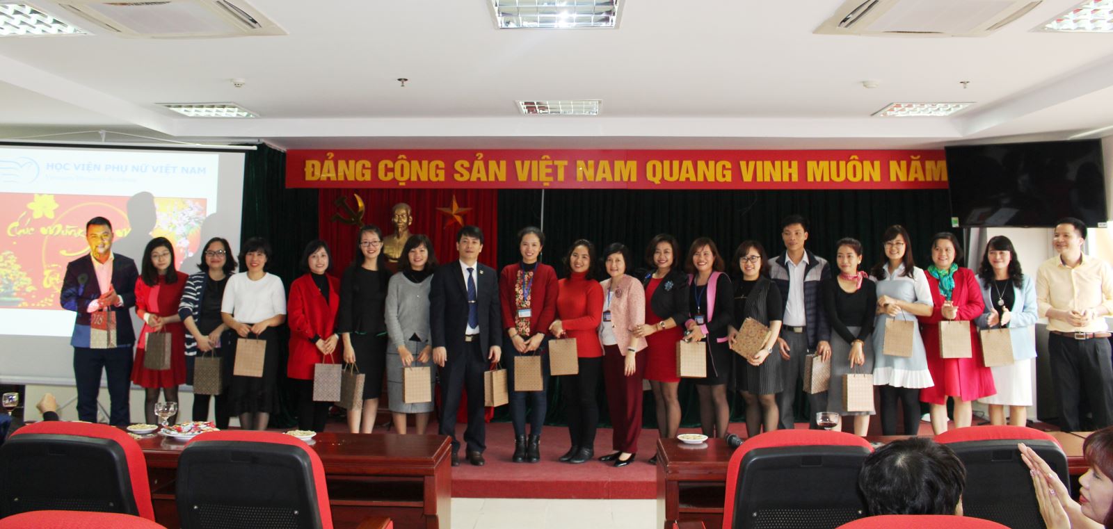Những lời ca, tiếng hát mừng xuân, những nụ cười tươi tắn, những ánh mắt rạng ngời niềm tin, những cái bắt tay ấm tình đồng nghiệp, những lời chúc thành công, may mắn làm không khí mùa xuân lan tỏa, ngập tràn tại Học viện. Chúc cho xuân đến với mọi nhà đem theo những niềm vui ý nghĩa, chúc Học viện Phụ nữ Việt Nam sẽ có một mùa xuân đầy khởi sắc.
