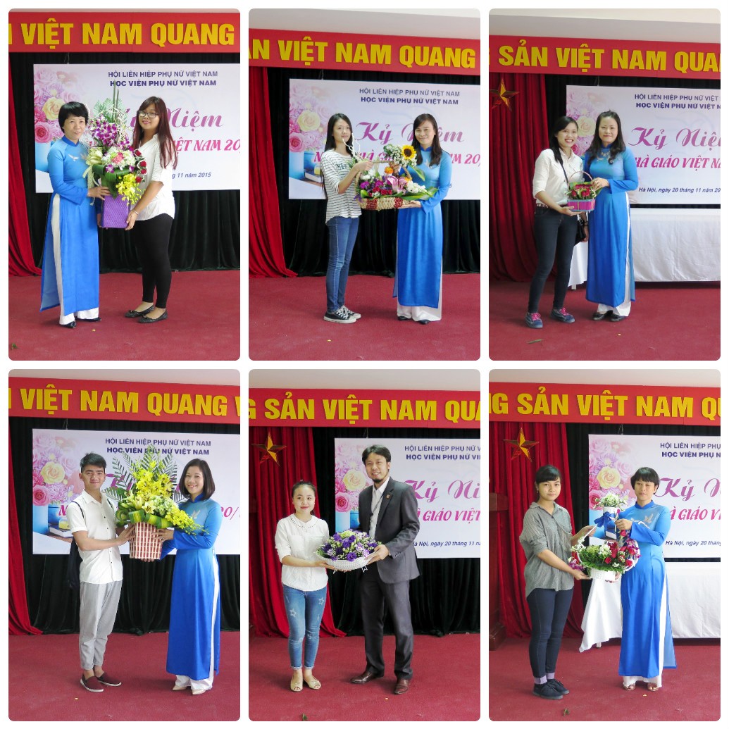 Thay mặt toàn thể sinh viên học viện, em Lã Tuấn Anh Quân – Sinh viên lớp K3 Luật A đã gửi lời chúc mừng ngày Nhà Giáo Việt Nam đến các thầy cô, bày tỏ lòng tri ân sâu sắc đến các thầy cô đã và đang ngày đêm đóng góp công sức, trí tuệ để dạy dỗ, rèn luyện sinh viên trở thành những cử nhân có đủ năng lực làm việc, có phẩm chất đạo đức tốt phục vụ công cuộc xây dựng đất nước. Tập thể sinh viên học viện cũng xin hứa phấn đấu hết sức để trở thành niềm tự hào của Học viện Phụ nữ Việt Nam.