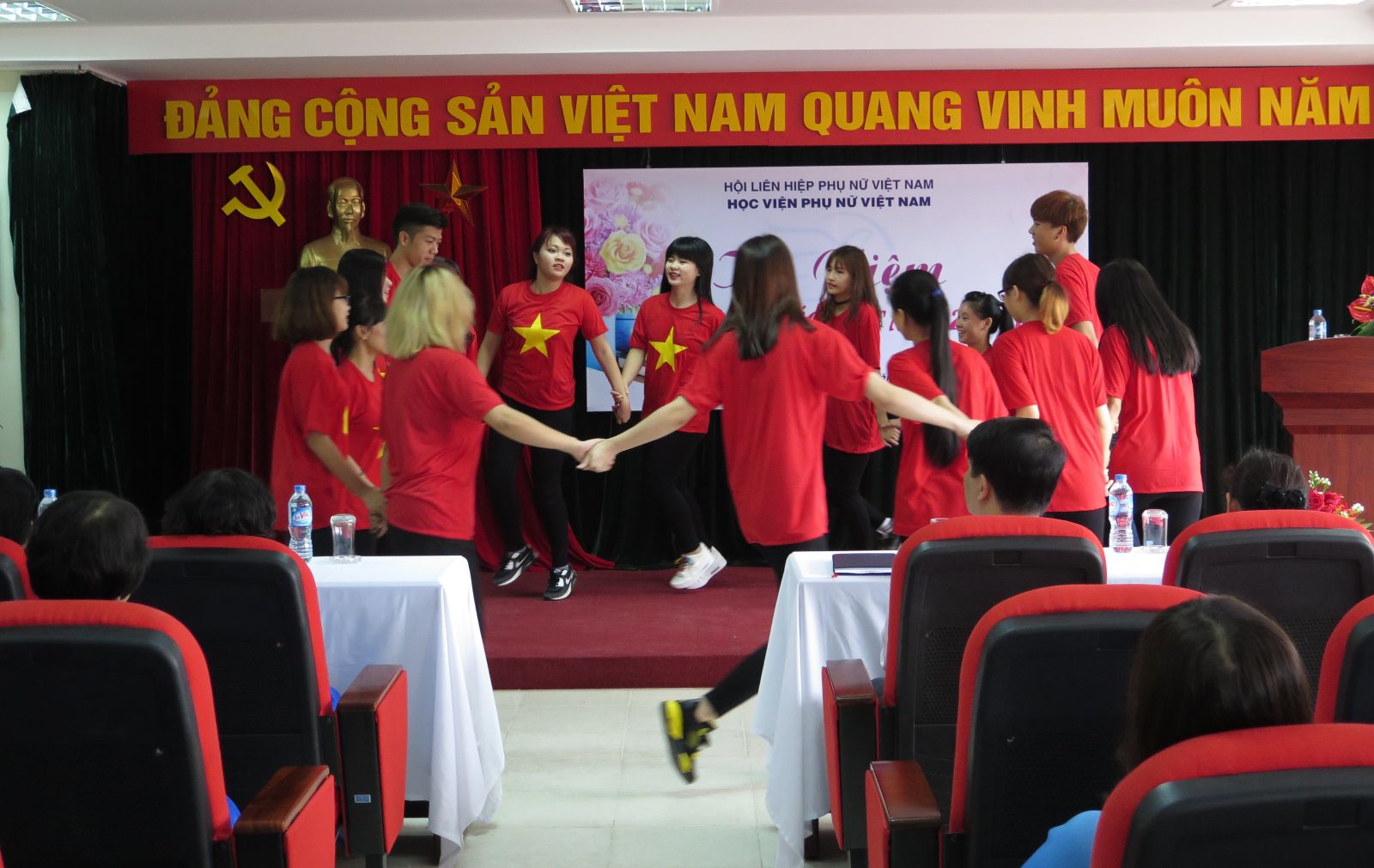 Mở đầu buổi lễ là những tiết mục văn nghệ đặc sắc, ý nghĩa do các bạn sinh viên của học viện biểu diễn. Những bài ca, điệu múa được dàn dựng công phu đã nói lên tình cảm yêu mến đối với thầy cô và mái trường Học viện Phụ nữ Việt Nam.