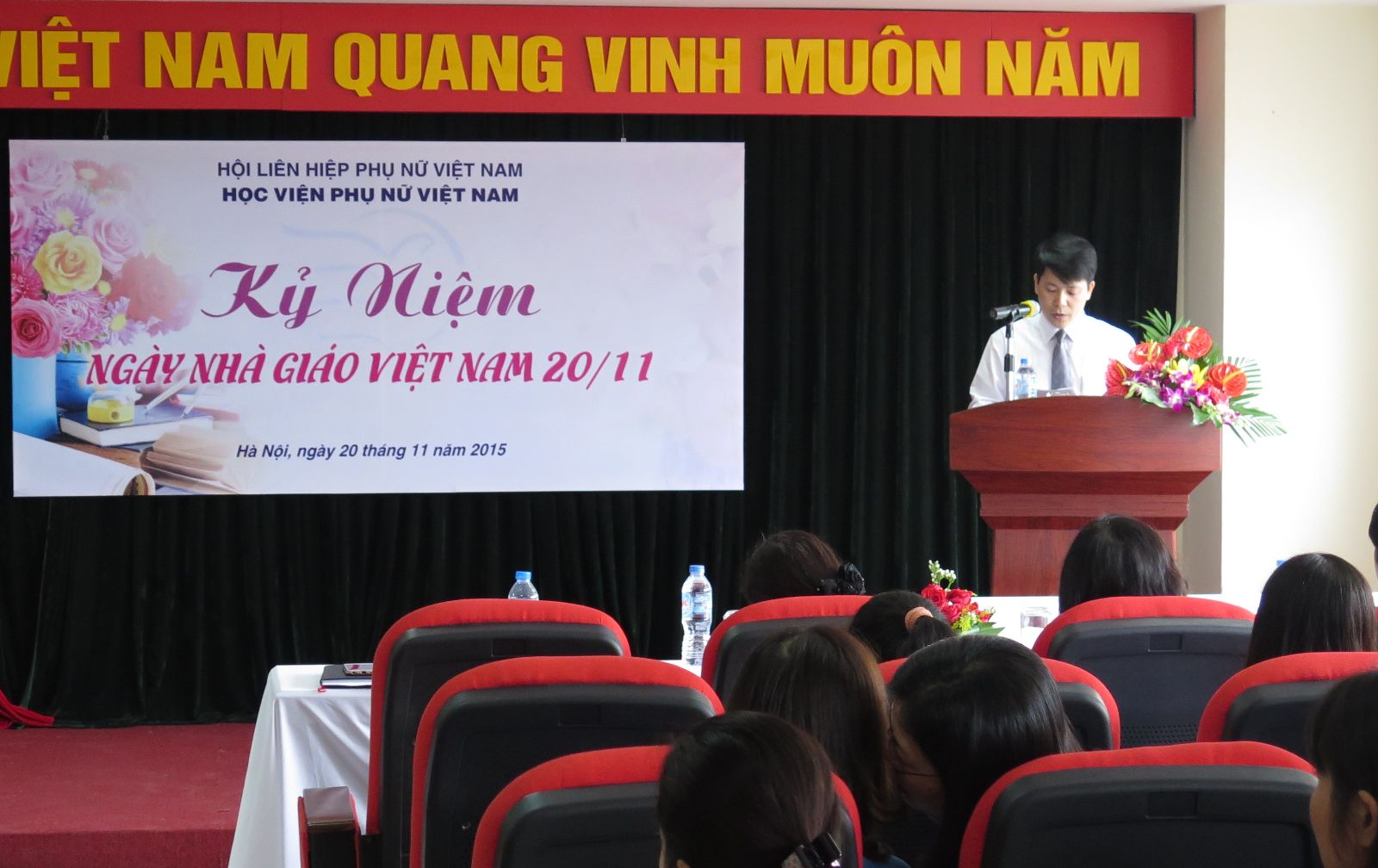 Thay mặt toàn thể sinh viên học viện, em Lã Tuấn Anh Quân – Sinh viên lớp K3 Luật A đã gửi lời chúc mừng ngày Nhà Giáo Việt Nam đến các thầy cô, bày tỏ lòng tri ân sâu sắc đến các thầy cô đã và đang ngày đêm đóng góp công sức, trí tuệ để dạy dỗ, rèn luyện sinh viên trở thành những cử nhân có đủ năng lực làm việc, có phẩm chất đạo đức tốt phục vụ công cuộc xây dựng đất nước. Tập thể sinh viên học viện cũng xin hứa phấn đấu hết sức để trở thành niềm tự hào của Học viện Phụ nữ Việt Nam.