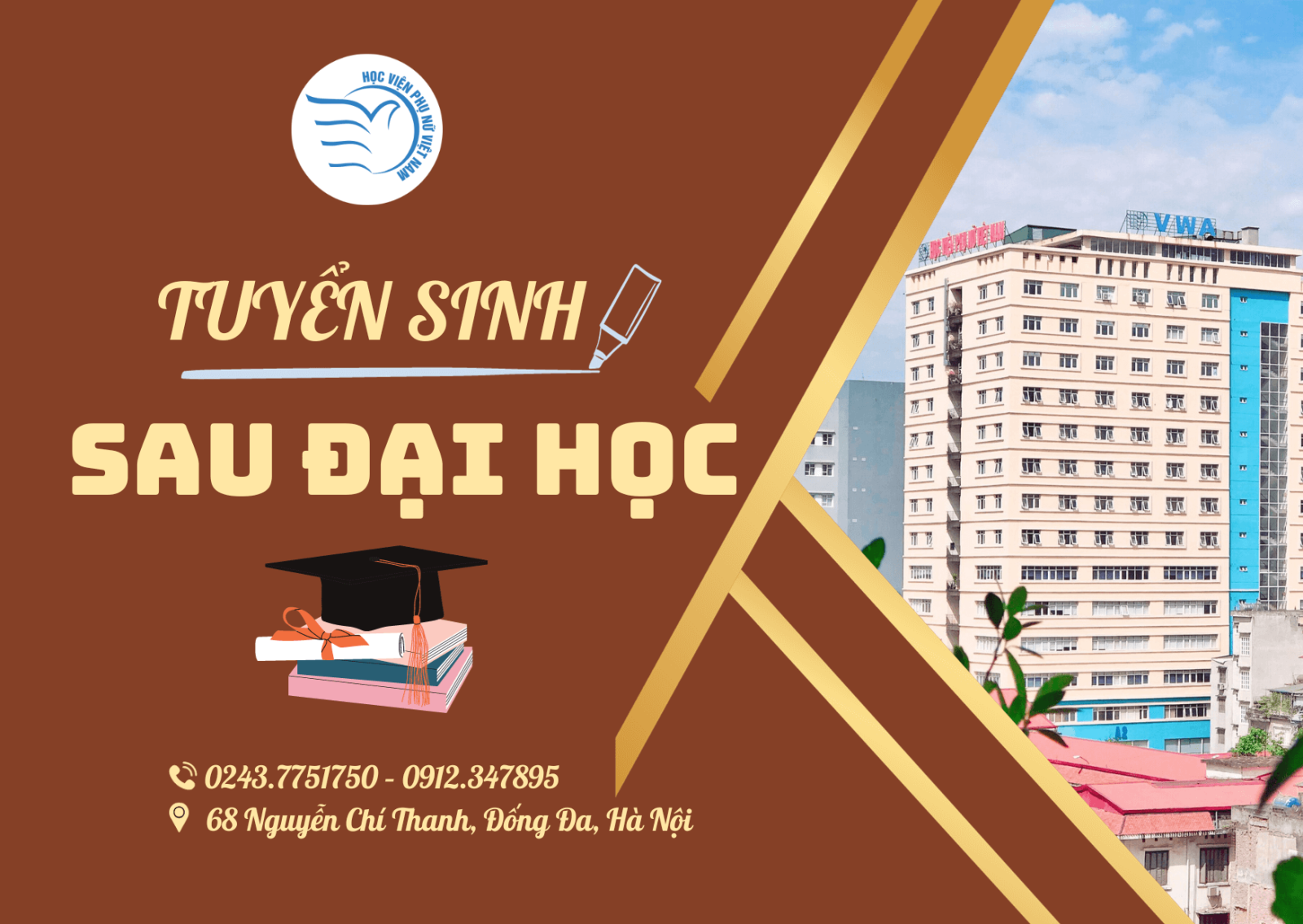 Mọi chi tiết xin liên hệ: Phòng Đào tạo, Học viện Phụ nữ Việt Nam. Điện thoại: 0243.7751750 – 0912.347895 – 0934.746820.