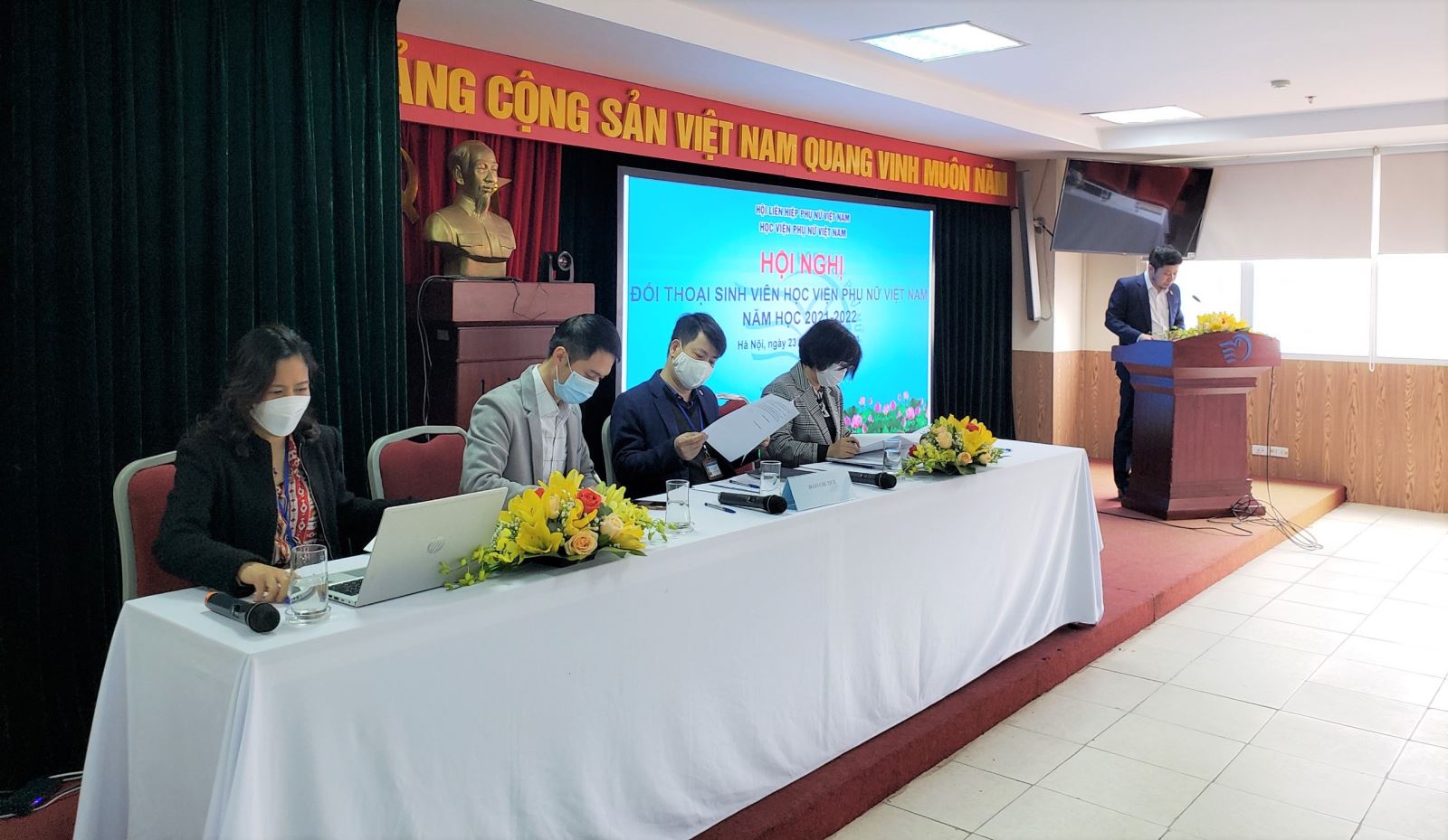 Với phương châm lấy người học làm trung tâm, Hội nghị đối thoại với sinh viên năm học 2021 – 2022 của Học viện Phụ nữ Việt Nam đã tiếp tục phát huy tính chủ động, sáng tạo và tinh thần trách nhiệm của sinh viên sau gần 3 giờ trao đổi. Hội nghị đối thoại với sinh viên đã mang lại rất nhiều ý nghĩa không chỉ với các bạn sinh viên, thông qua Hội nghị này các thầy, cô giáo cũng hiểu hơn những tâm tư, nguyện vọng, khó khăn sinh viên đang gặp phải. Hội nghị đã tạo nên một cuộc đối thoại cởi mở, thẳng thắn hướng đến một môi trường giáo dục đúng theo triết lý của học viện: Giáo dục Toàn diện, Chất lượng và Bình đẳng.