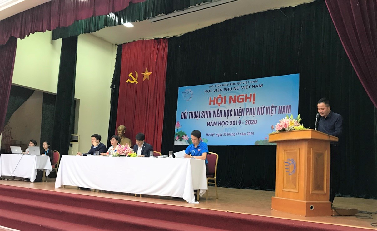 Tham dự hội nghị có sự hiện diện của TS. Trần Quang Tiến – Giám đốc Học viện Phụ nữ Việt Nam và lãnh đạo tất cả các đơn vị khoa, phòng, trung tâm thuộc học viện. Hội nghị đối thoai với sinh viên năm học 2019 – 2020 còn có sự tham gia của 250 sinh viên đại diện cho 43 lớp hệ đại học chính quy tại học viện.