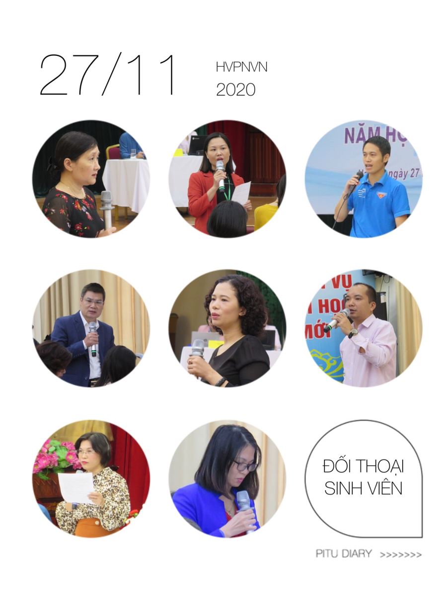 Với phương châm lấy người học làm trung tâm, Hội nghị đối thoại với sinh viên năm học 2020 – 2021 của Học viện Phụ nữ Việt Nam đã tiếp tục phát huy tính chủ động, sáng tạo và tinh thần trách nhiệm của sinh viên. Phát biểu kết luận tại hội nghị, Giám đốc Trần Quang Tiến hoan nghênh các sinh viên mạnh dạn nêu ý kiến và tham gia trao đổi sôi nổi, có ý thức tự giác và thẳng thắn bày tỏ quan điểm cá nhân về vấn đề liên quan đến quyền lợi học tập của mình. Học viện ghi nhận toàn bộ những ý kiến đã trao đổi và yêu cầu các đơn vị chức năng nhanh chóng tìm giải pháp khắc phục những tồn tại, tạo điều kiện tốt nhất cho sinh viên học tập. Giám đốc Trần Quang Tiến cũng làm rõ vai trò, trách nhiệm của sinh viên trong công tác phối hợp với nhà trường cải thiện và nâng cao chất lượng của môi trường học tập.