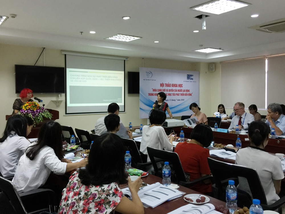 Tham dự hội thảo có sự hiện diện của ông Erwin Schweisshelm, Trưởng đại diện Viện FES; bà Randzio – Plath, Chủ tịch Hiệp hội Marie – Schlei (nguyên nghị sĩ Nghị viện Châu Âu); Ban Giám đốc Học viện; các đại biểu cơ quan TW Hội Liên hiệp Phụ nữ Việt Nam; lãnh đạo các Khoa, phòng đơn vị, giảng viên, sinh viên Khoa Luật, Khoa Giới và Phát triển và các chuyên gia, nhà khoa học trường Đại học Lao động và Xã hội, Bộ môn Luật Kinh doanh thuộc Khoa Luật Đại học quốc gia Hà Nội…
