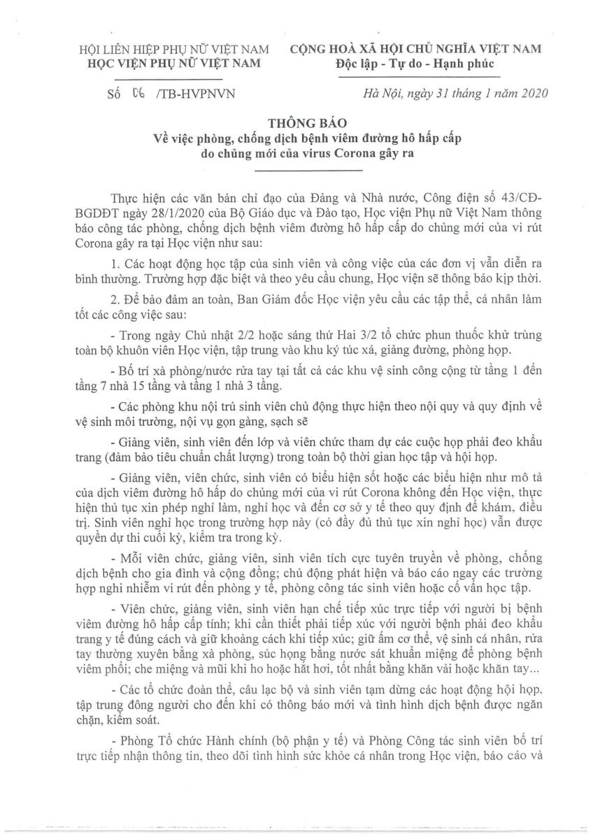 Tin tứcHVPNVN THÔNG BÁO PHÒNG CHỐNG DỊCH BỆNH DO VIRUS CORONA GÂY RA Posted on Tháng Một 31, 2020 by admin(full) 31 Th1 admin(full) Học viện Phụ nữ Việt Nam tổ chức gặp mặt đầu Xuân Canh Tý 2020 Thông báo Tuyển cộng tác viên tuyển sinh đại học năm 2020