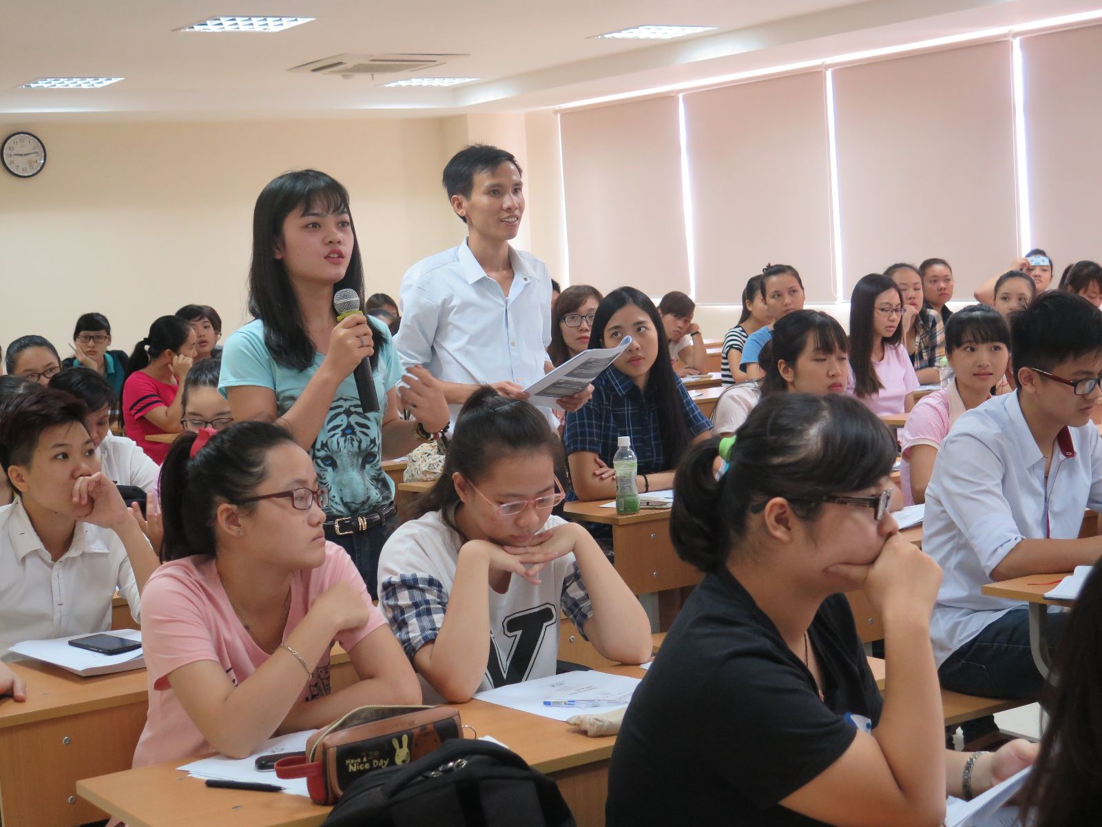 Sinh viên của Học viện Phụ nữ Việt Nam đã không ngại trao đổi, bày tỏ những hiểu biết và những thắc mắc về các vấn đề tìm kiếm giá trị bản thân, phát huy sở trường, chịu trách nhiệm với quyết định, rèn luyện khả năng lãnh đạo…với chuyên gia.