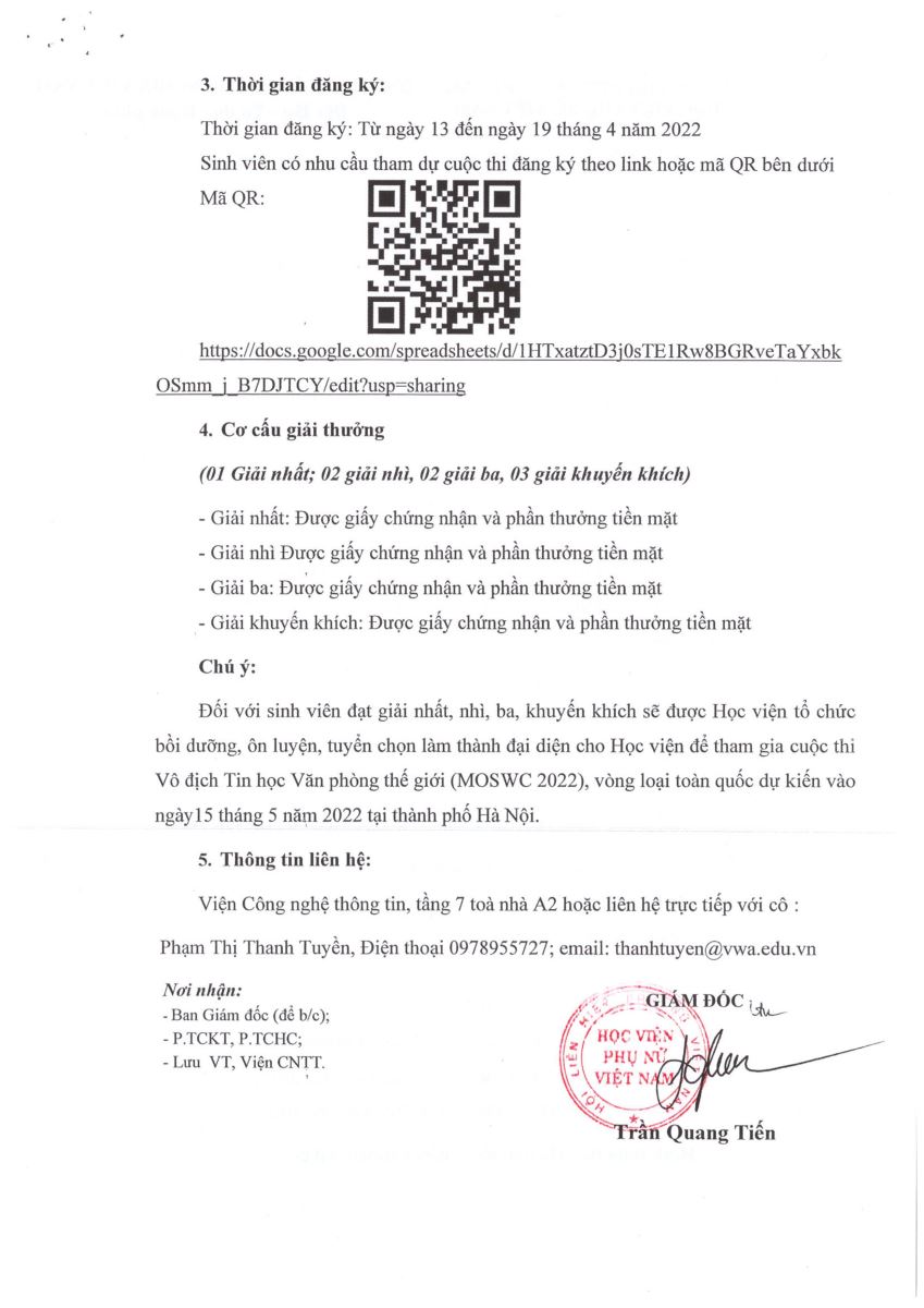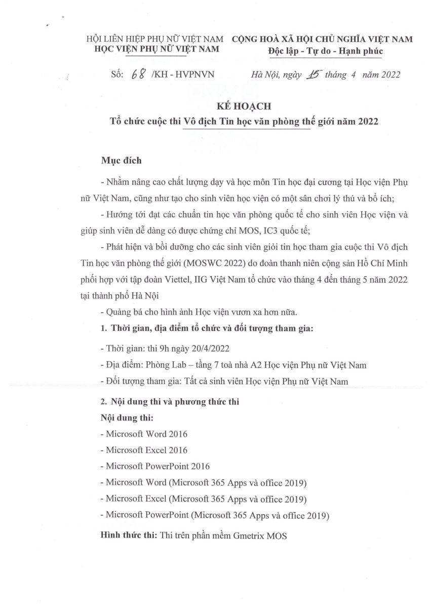 Tin tứcKế hoạch tổ chức cuộc thi Vô địch Tin học thế giới Posted on Tháng Tư 15, 2022 by admin(full) 15 Th4 admin(full) HỌC VIỆN PHỤ NỮ VIỆT NAM XÉT TUYỂN 1.665 CHỈ TIÊU NĂM 2022 Khoa công tác xã hội, Học viện phụ nữ Việt Nam – “Ngôi nhà bình yên” của sinh viên