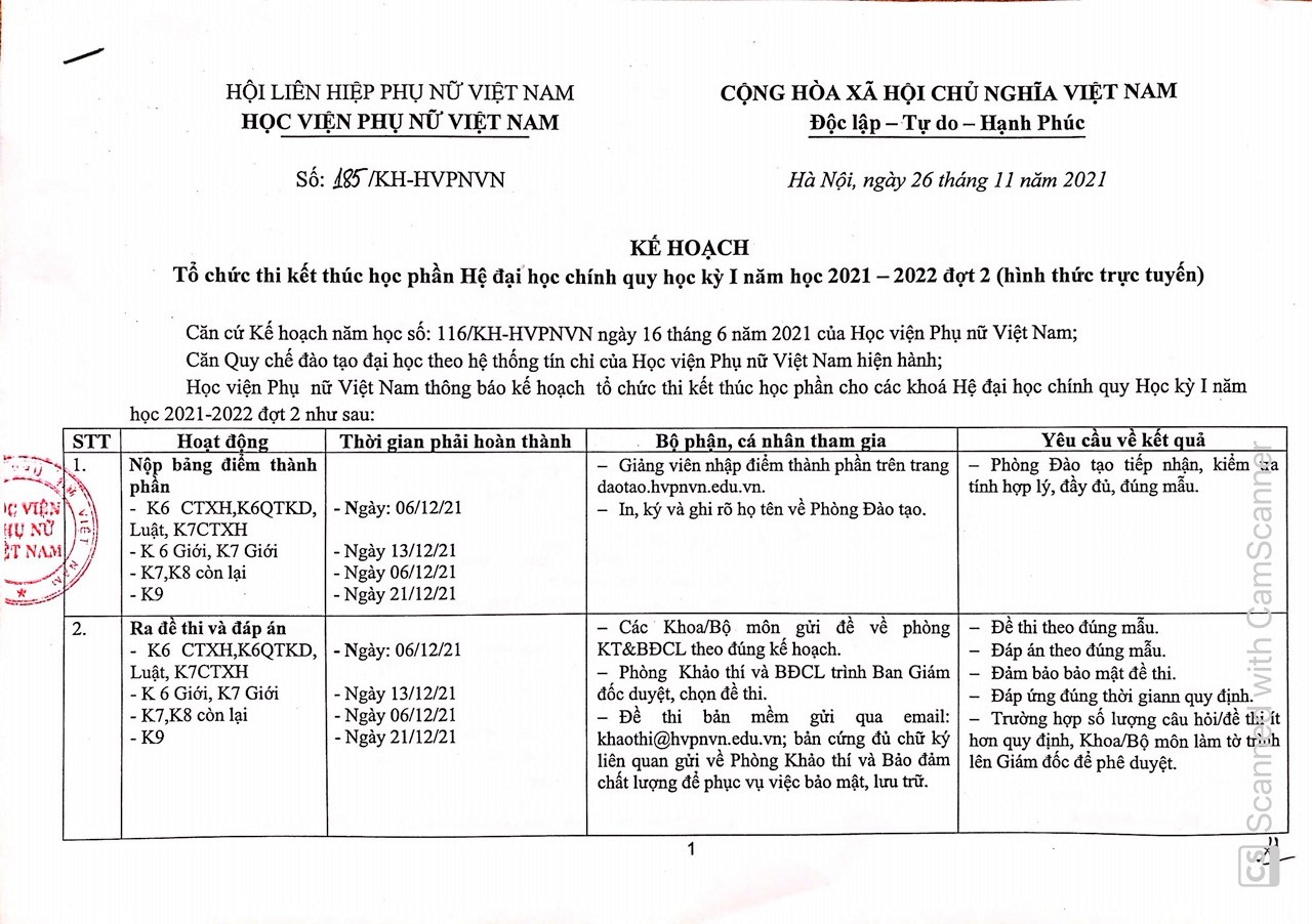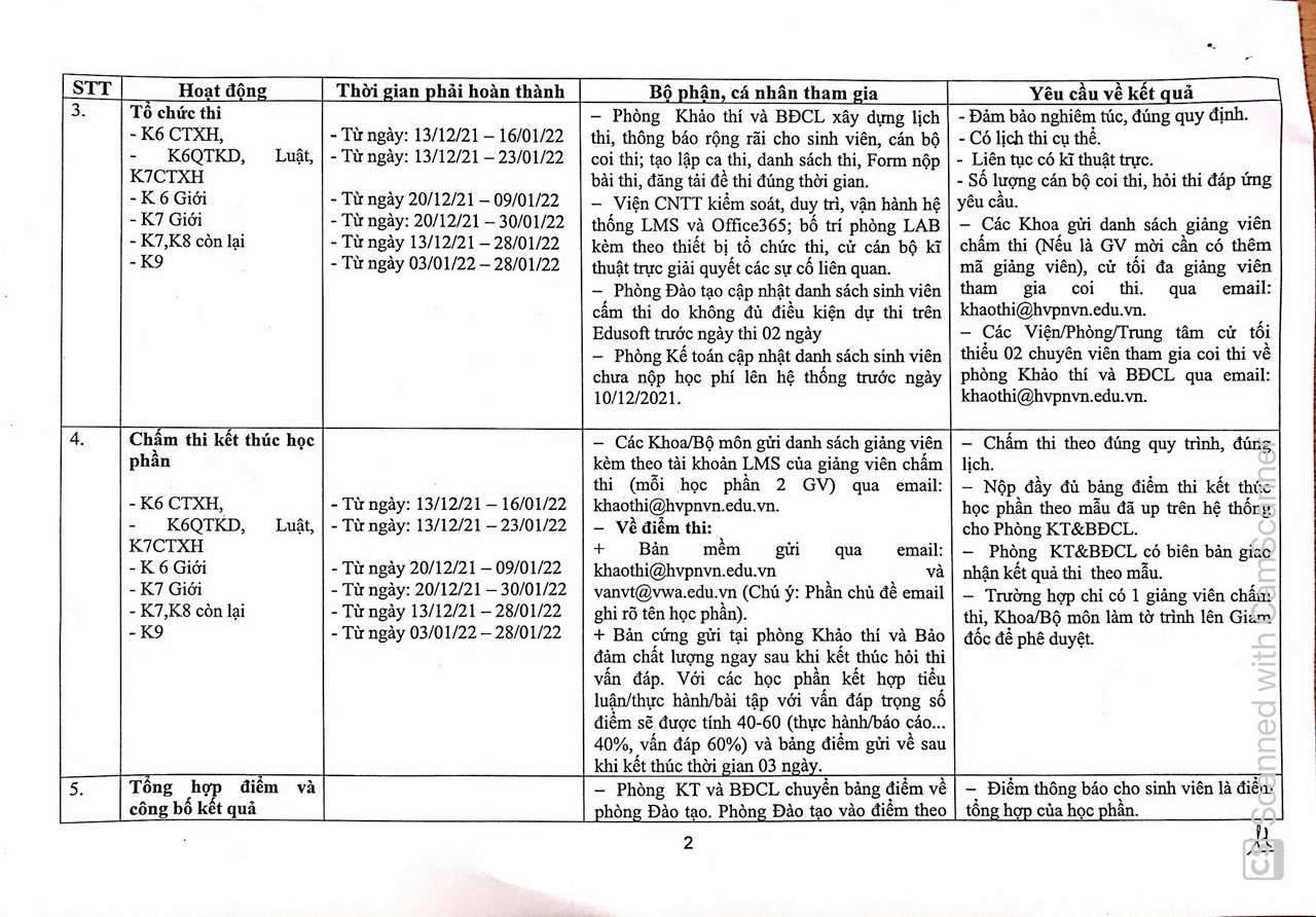 Kế hoạch tổ chức thi hết HKI năm học 2021 - 2022