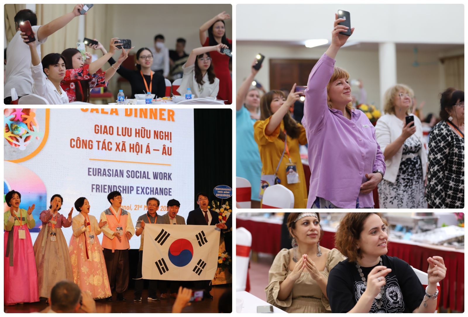 Tiết mục: Vũ điệu kết đoàn nhận được sự hưởng ứng và tham gia của đông đảo các vị khách quốc tế tạo nên không khí sôi động, tươi vui và đoàn kết của chương trình Gala dinner: Giao lưu hữu nghị Công tác xã hội Á – Âu