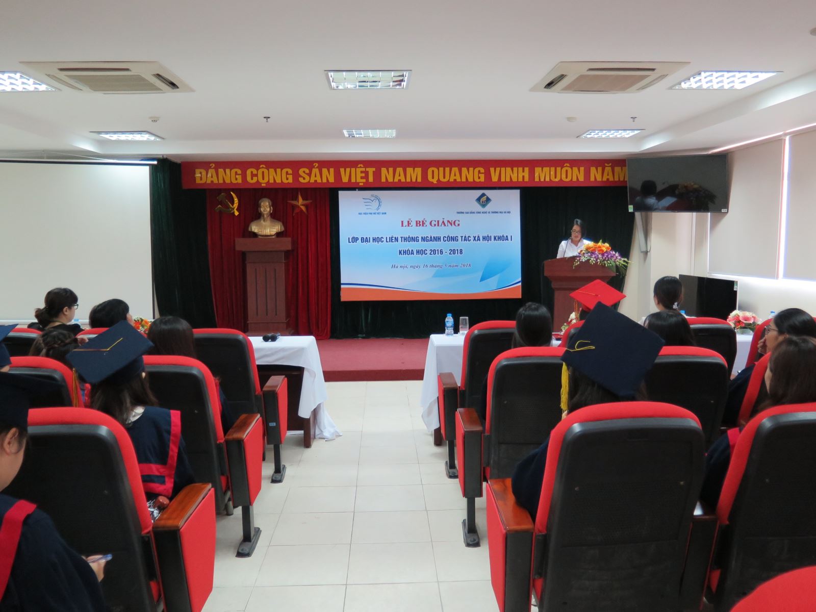 Tại lễ bế giảng, TS. Dương Kim Anh đã trao bằng cử nhân cho 36 sinh viên của lớp lớp liên thông Cao đẳng – đại học chính quy ngành Công tác xã hội khóa học 2016 – 2018 trong niềm vui mừng, xúc động của cả thầy và trò.