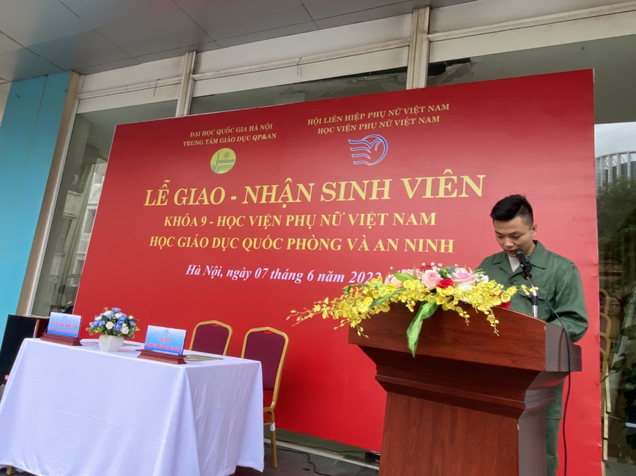 Đại diện sinh viên K9 cam kết thực hiện nghiêm túc chương trình Giáo dục Quốc phòng và An ninh