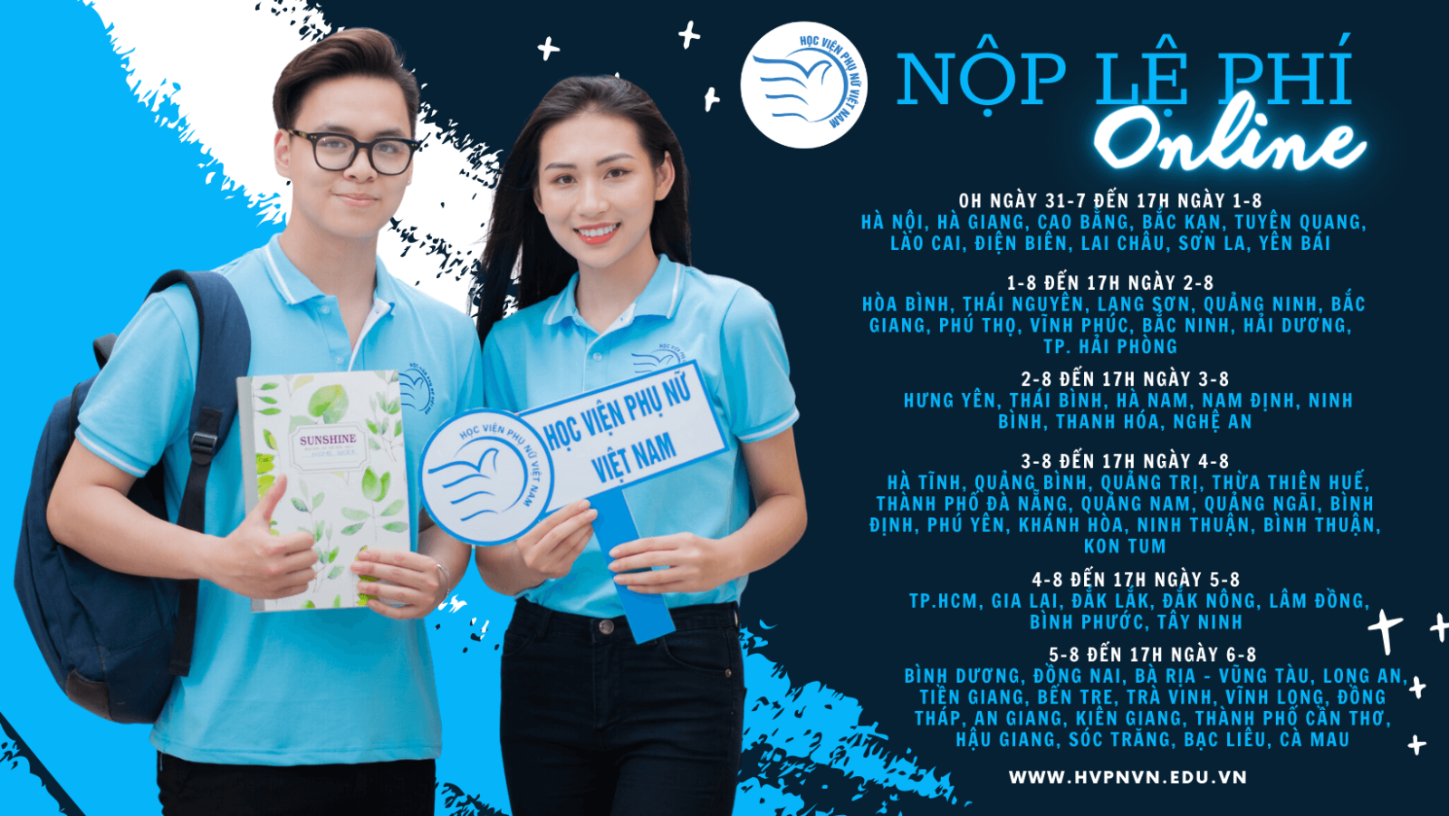 Năm 2023, Học viện Phụ nữ Việt Nam xét tuyển 1.515 chỉ tiêu cho 10 ngành đào tạo đại học chính quy: Ngành Quản trị kinh doanh; Luật; Luật kinh tế; Công nghệ thông tin; Công tác xã hội; Giới và phát triển; Quản trị Dịch vụ Du lịch và lữ hành; Truyền thông đa phương tiện; Kinh tế; Tâm lý học. Cảm ơn các thí sinh đã lựa chọn HPN là nguyện vọng đăng ký xét tuyển, các bạn lưu ý theo dõi lịch thanh toán để đảm bảo thanh toán đúng thời gian quy định dành cho khu vực xét tuyển của mình. Học viện Phụ nữ Việt Nam sẵn sàng lắng nghe, hỗ trợ các thí sinh thực hiện các thao tác nộp lệ phí trực tuyến để hoàn tất công đoạn cuối cùng của việc đăng ký xét tuyển đại học năm 2023.