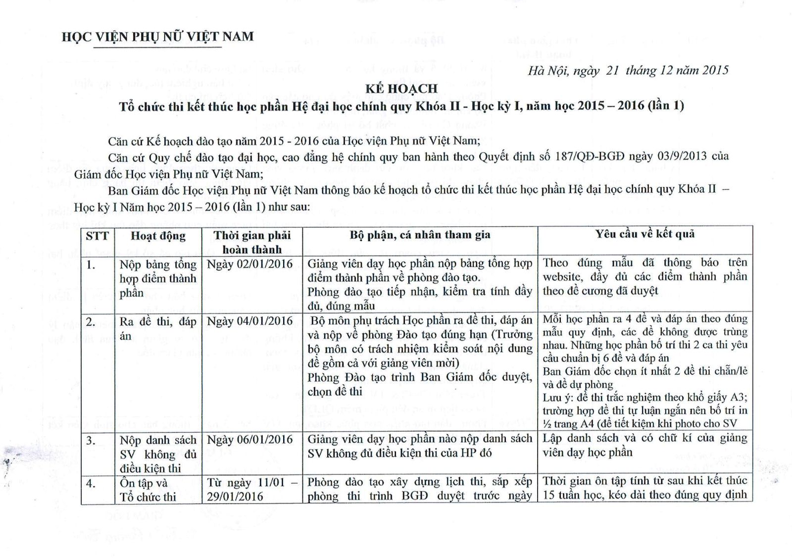 Tin tứcLịch thi khóa II – Học kỳ I, năm học 2015 – 2016 Posted on Tháng Một 4, 2016 by admin(full) 04 Th1 admin(full) Công đoàn tổ chức mừng sinh nhật cho đoàn viên Học viện Phụ nữ Việt Nam tổ chức chia tay đồng chí Nguyễn Thị Kim Khánh