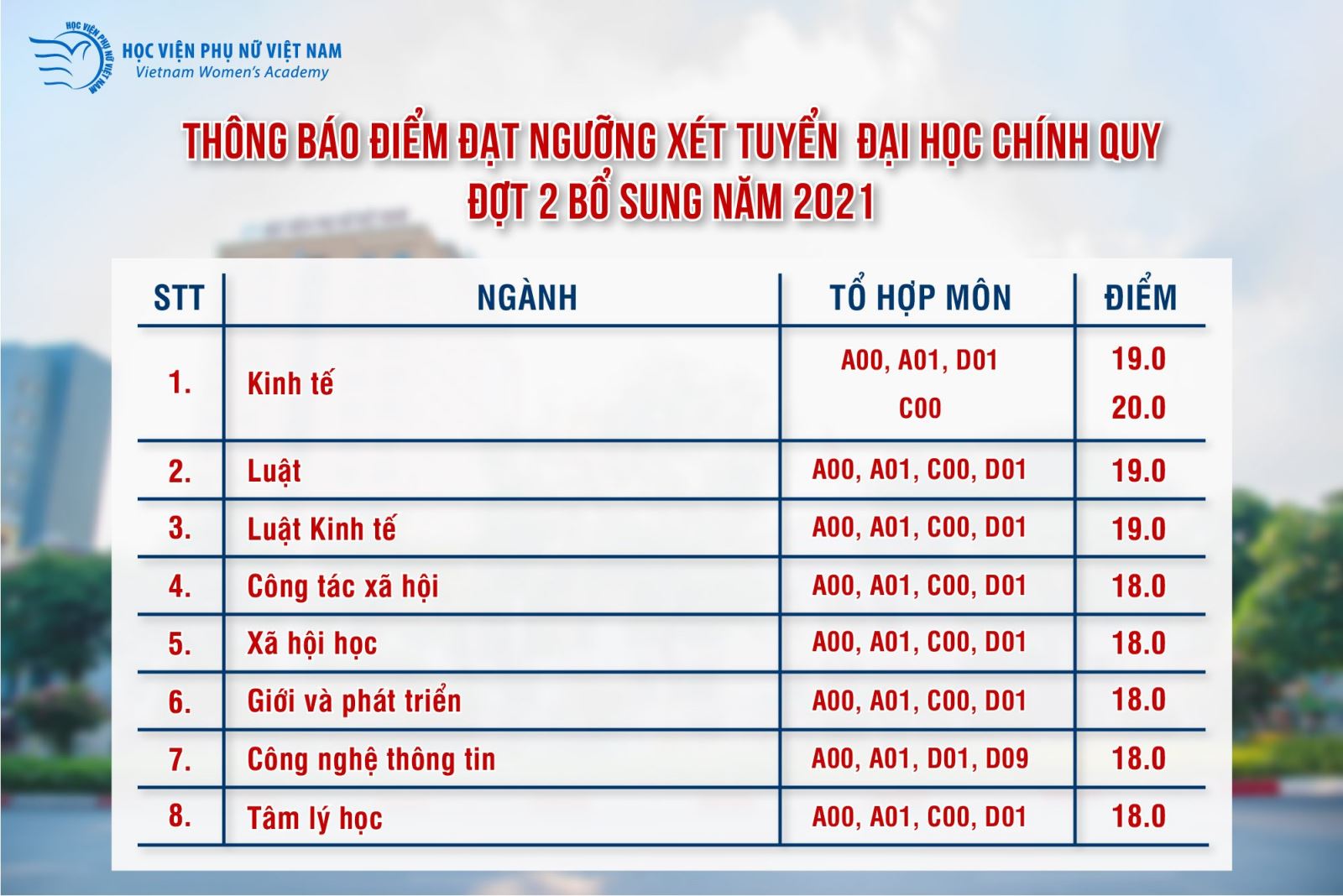 Mức điểm đạt ngưỡng xét tuyển bằng học bạ đợt 2 (bổ sung)