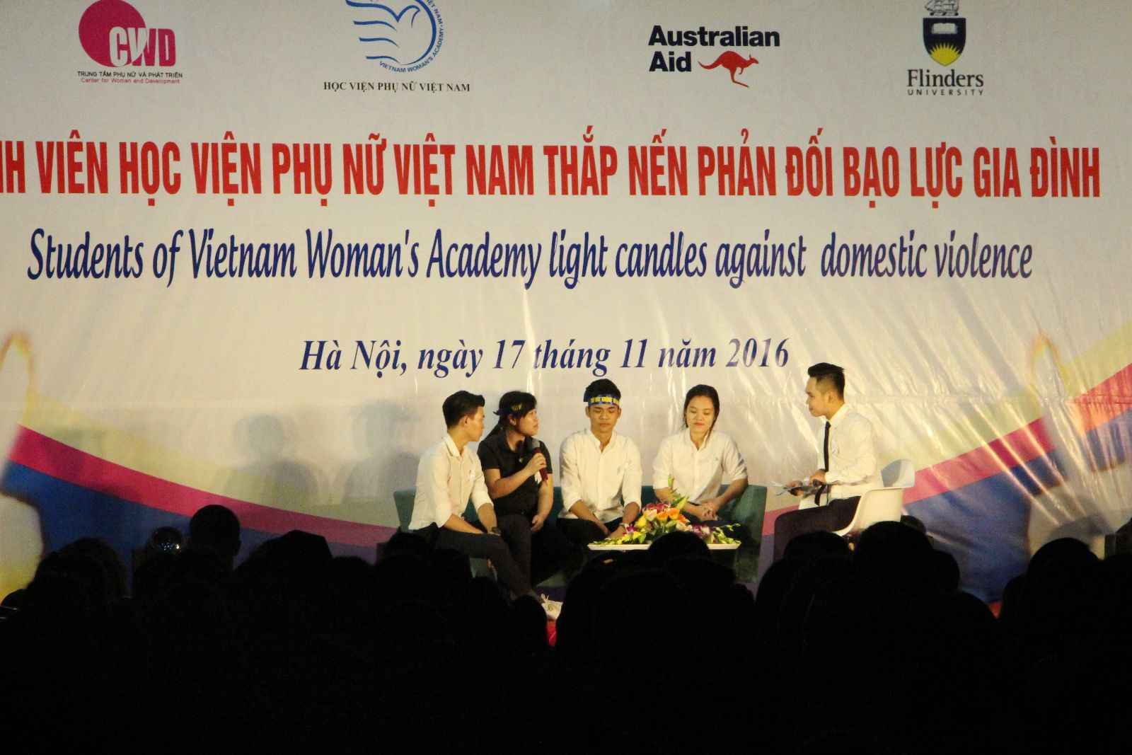 Trong khuôn khổ Dự án “Nâng cao năng lực Nguồn nhân lực tại Việt Nam: Cung cấp dịch vụ hiệu quả trong phòng chống bạo lực trên cơ sở giới và mua bán người” do Chính phủ Australia tài trợ, tối ngày 17/11/2016, Hội LHPN Việt Nam, Trung tâm Phụ nữ & Phát triển và Học viện Phụ nữ Việt Nam đã tổ chức sự kiện: Sinh viên Học viện Phụ nữ Việt Nam thắp nến phản đối bạo lực gia đình. Hoạt động mang ý nghĩa nhân văn sâu sắc hướng tới kỉ niệm ngày thế giới phòng chống Bạo lực gia đình (25/11) và hưởng ứng tháng hành động chống lại Bạo lực gia đình ở Việt Nam.