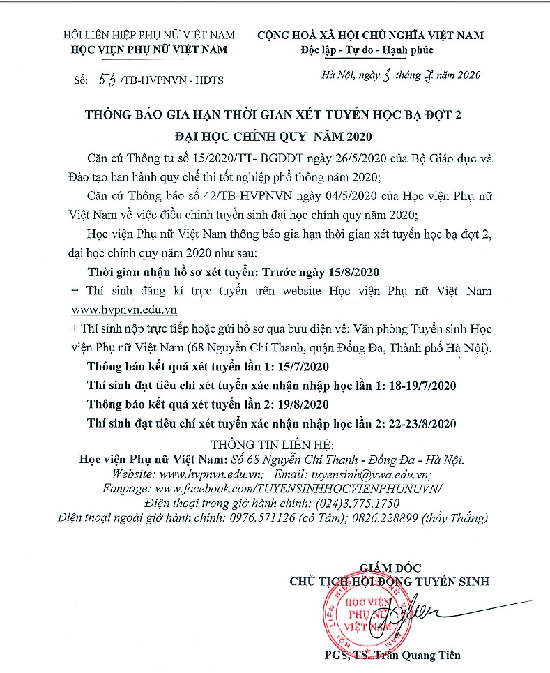 THÔNG BÁO GIA HẠN THỜI GIAN XÉT HỌC BẠ ĐỢT 2