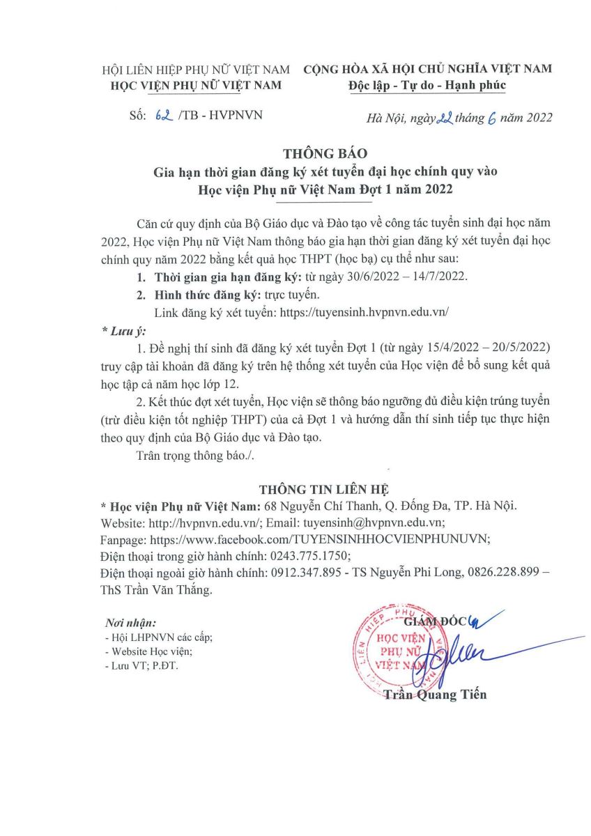 THÔNG BÁO GIA HẠN THỜI GIAN XÉT TUYỂN SỚM BẰNG HỌC BẠ 2022