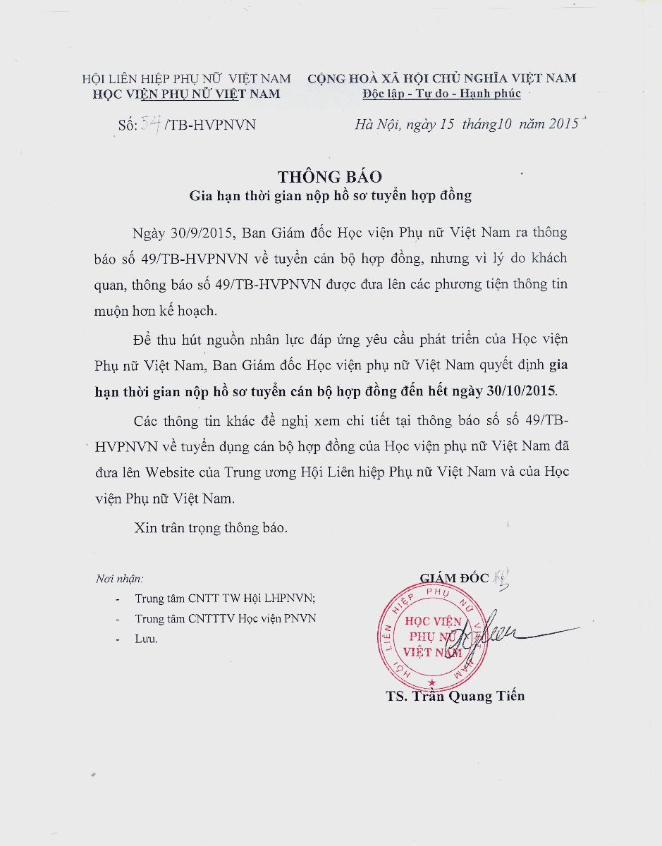 THÔNG BÁO GIA HẠN TUYỂN DỤNG CÁN BỘ HỢP ĐỒNG
