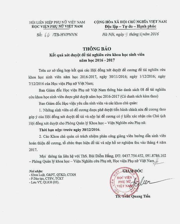 Tin tứcThông báo kết quả xét duyệt đề tài nghiên cứu khoa học của sinh viên Posted on Tháng Mười Hai 9, 2016 by admin(full) 09 Th12 admin(full) Hội thảo giới thiệu Giáo trình và Sổ tay về Giới & An sinh Xã hội Tọa đàm khoa học “Phát triển thương hiệu trong giáo dục đại học hiện nay – Cơ hội và thách thức”.