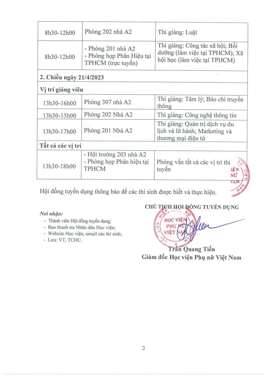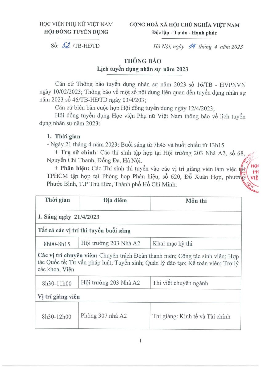 Tin tứcThông báo lịch thi tuyển nhân sự năm 2023 Posted on Tháng Tư 15, 2023 by admin(full) 15 Th4 admin(full) Thông báo tuyển sinh liên thông đại học ngành Công tác xã hội Học viện Phụ nữ Việt Nam, môi trường giáo dục toàn diện, chất lượng và bình đẳng
