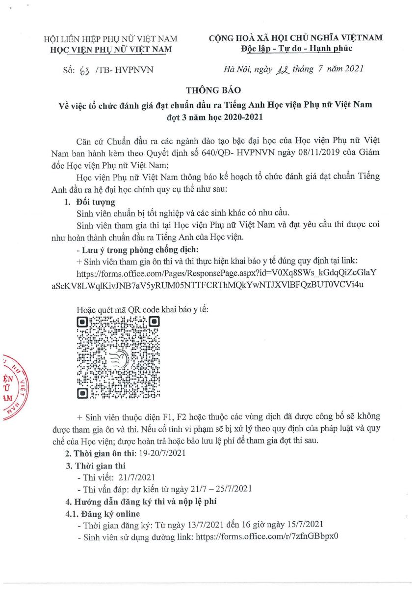 Thông báo thi chuẩn đầu ra Tiếng Anh đợt 3 năm học 2020-2021